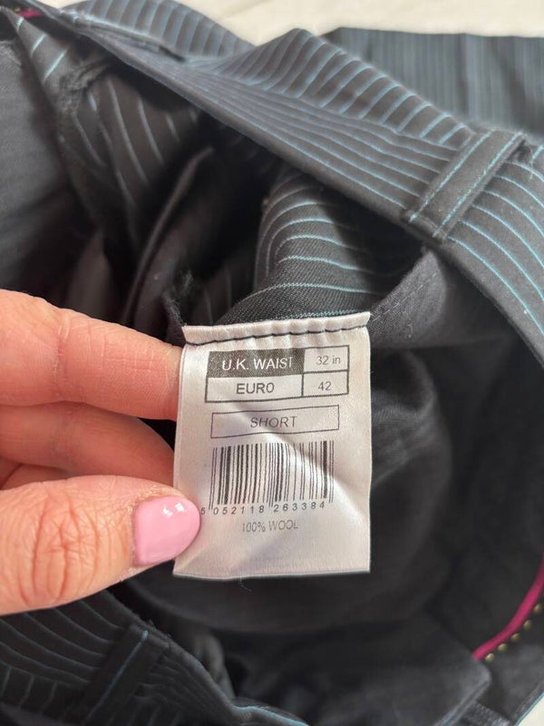 St.George By Duffer Striped 100% Wool Trousers Size 32' Short