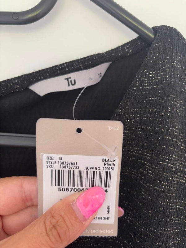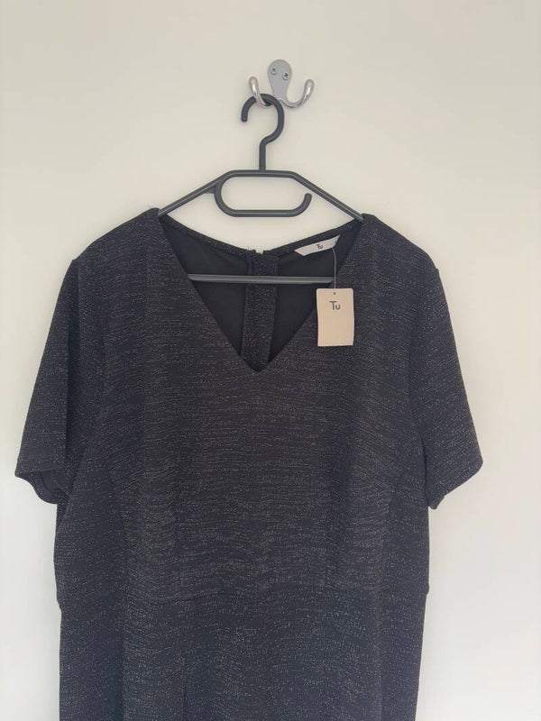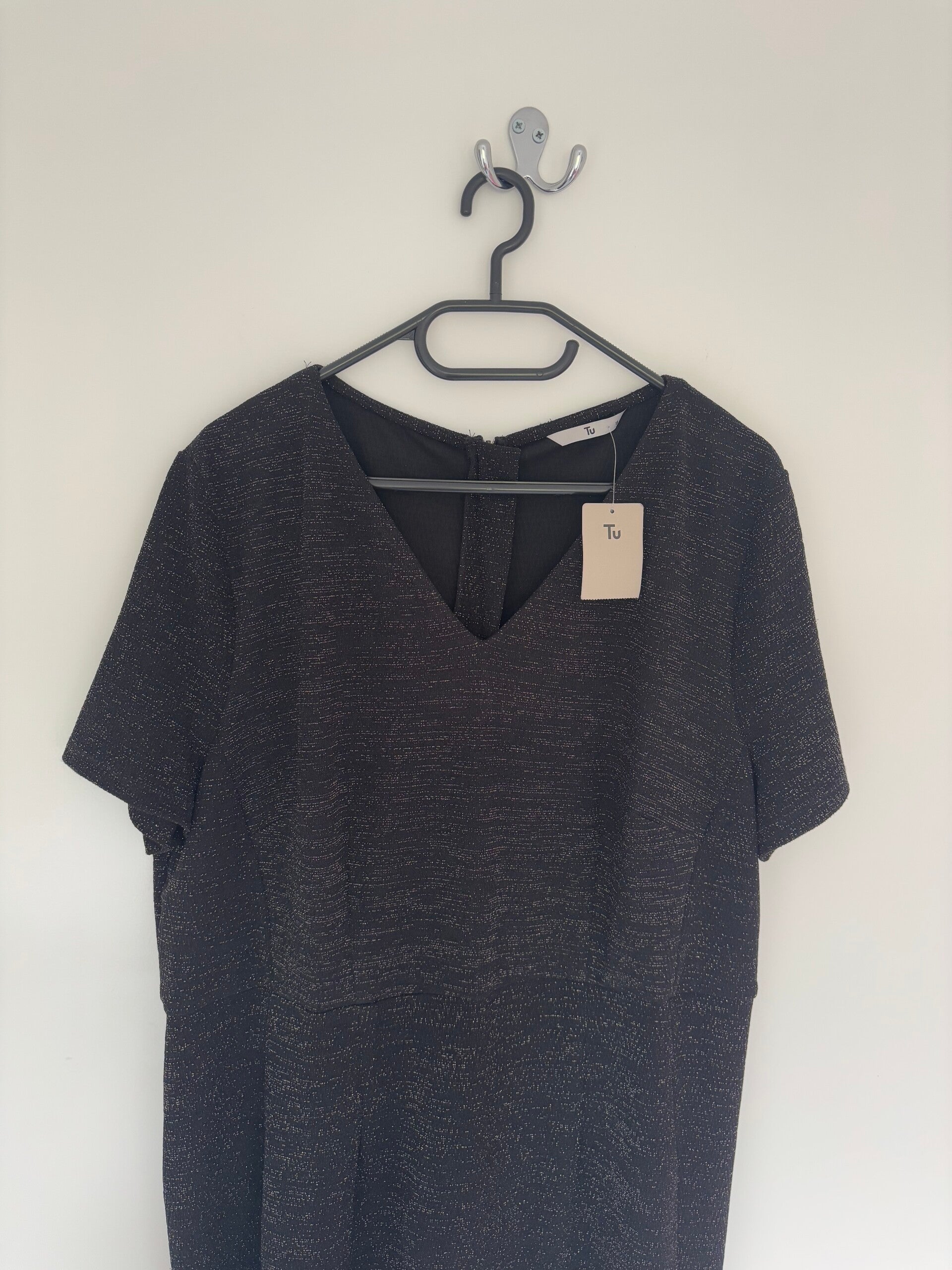 TU Short Sleeve V-Neck Black Glittery Midi Dress Size 18