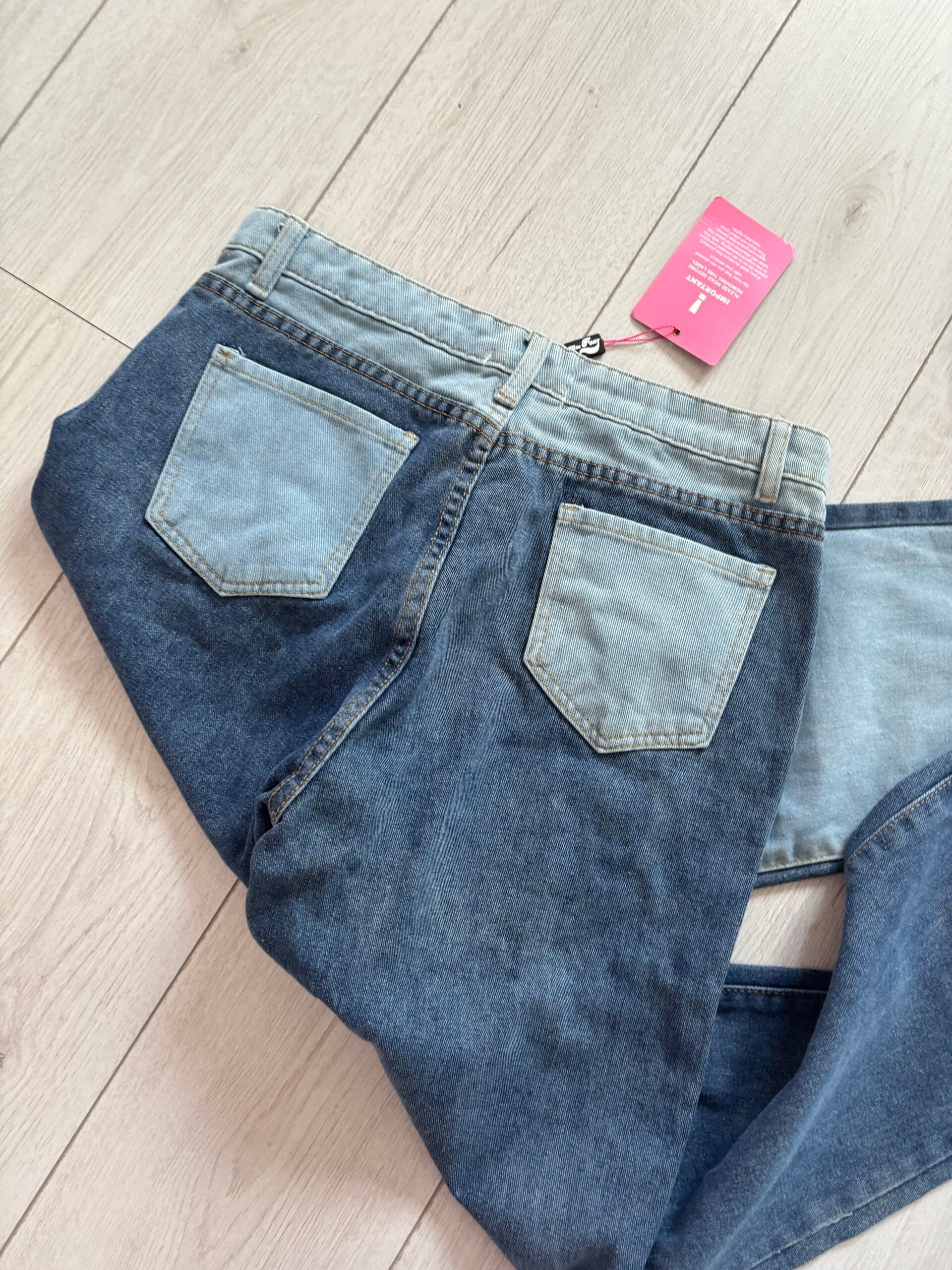 Miss Foxy Two Colours Boyfriend Type Straight Jeans Size L