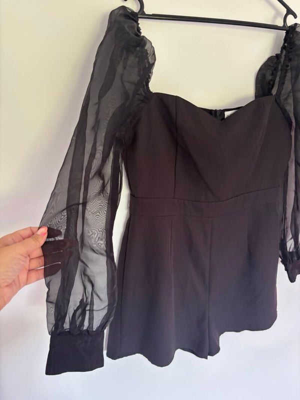 In The Style Wide Long Sleeve Playsuit Black Size 14