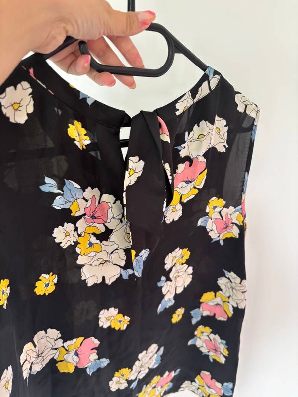 Clements Ribeiro Sleeveless Black Floral Top Blouse Size UK 14
