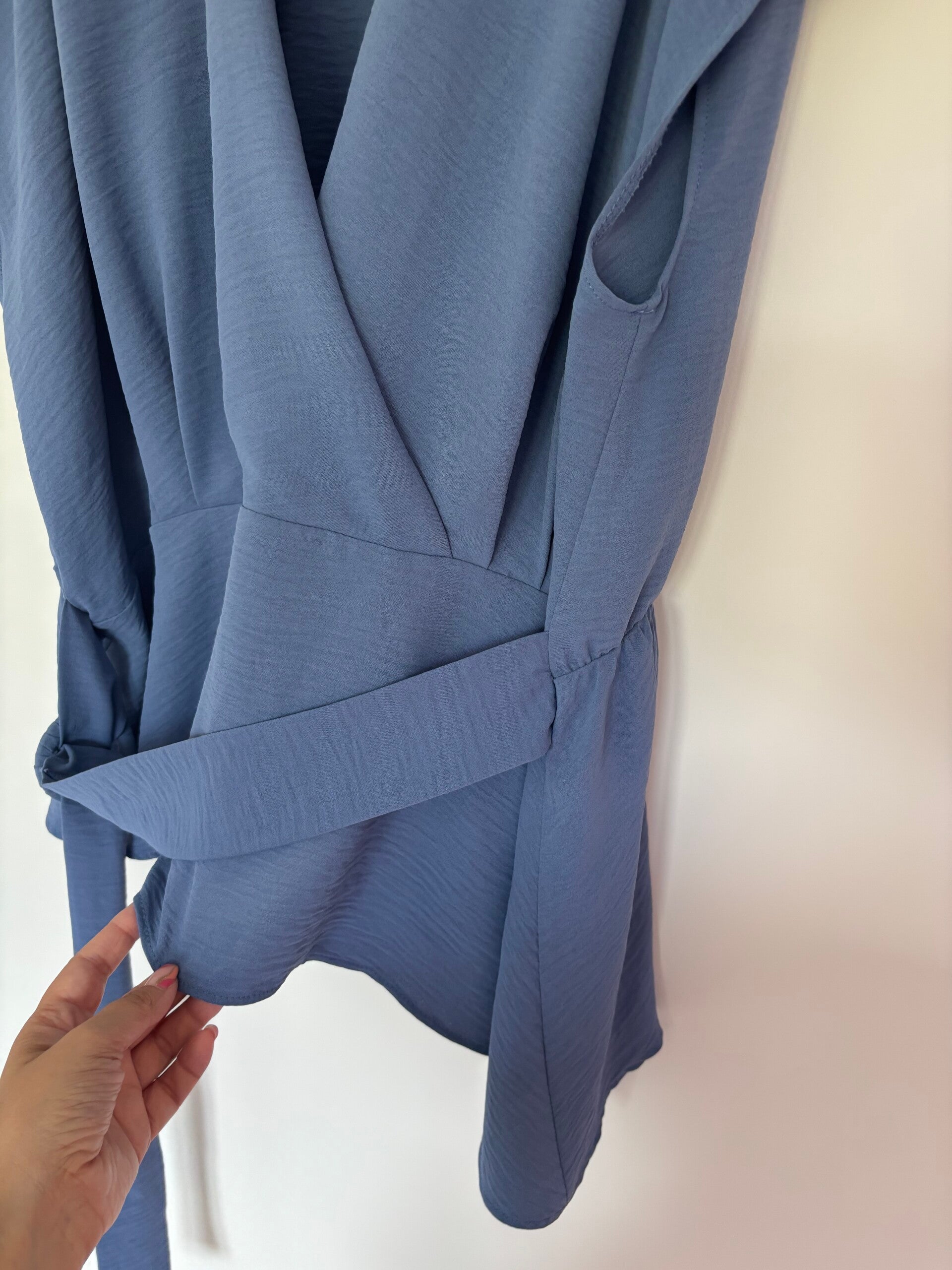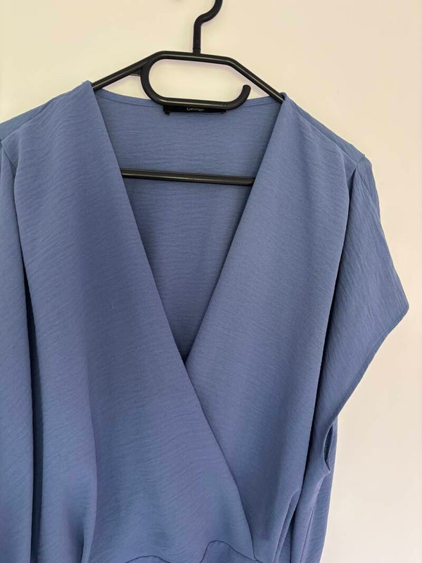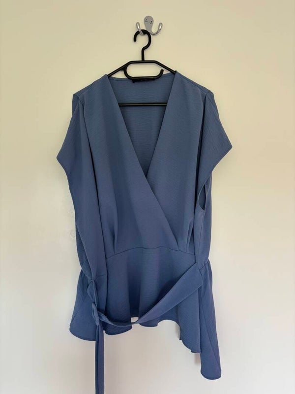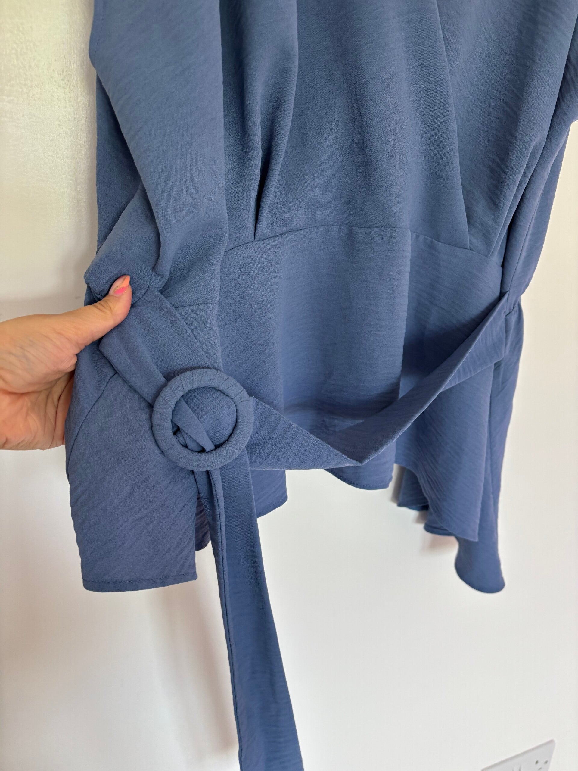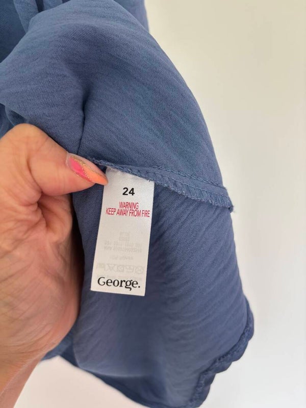 George Blue V-Neck With Belt Blouse Top Size 24