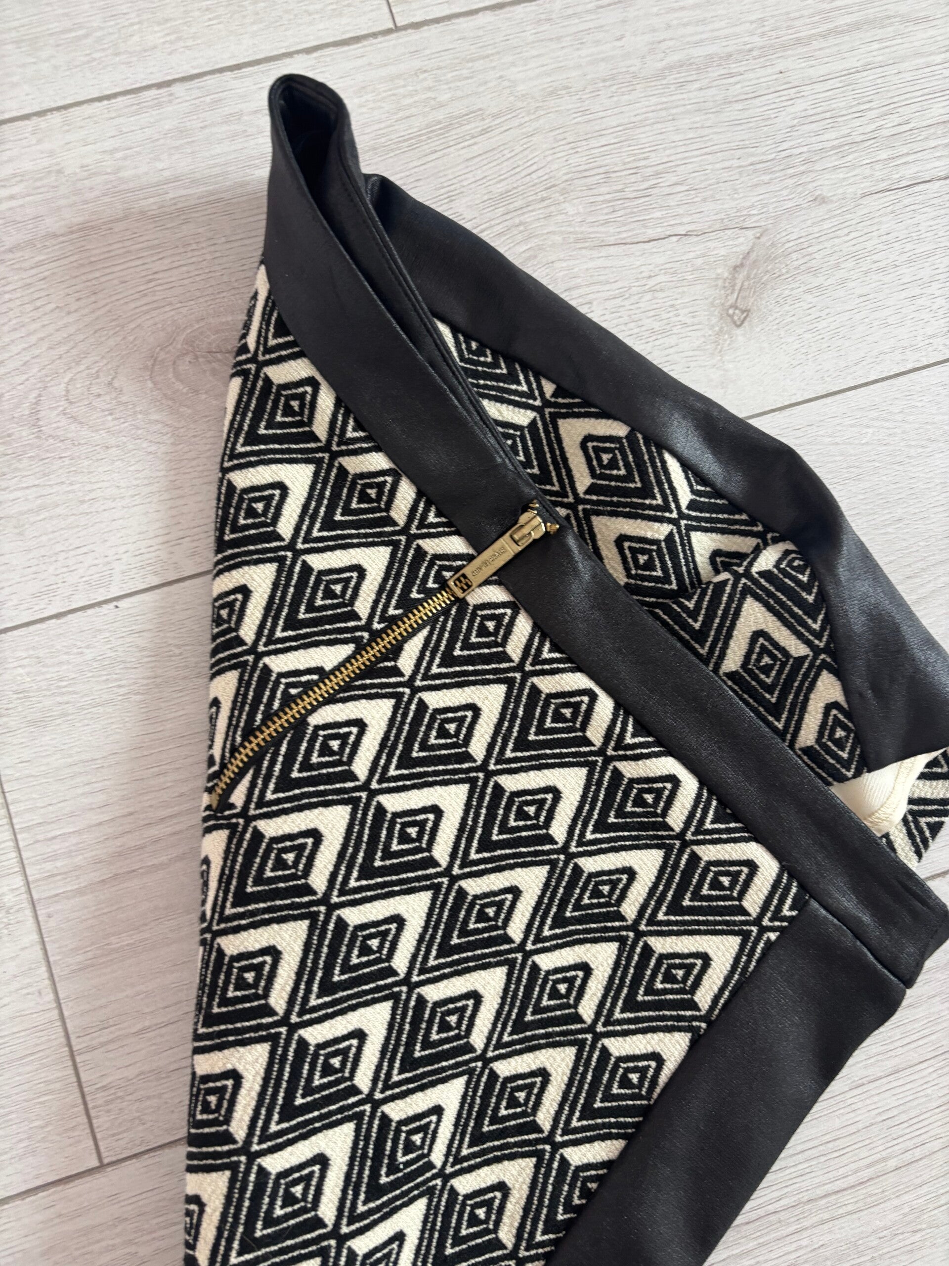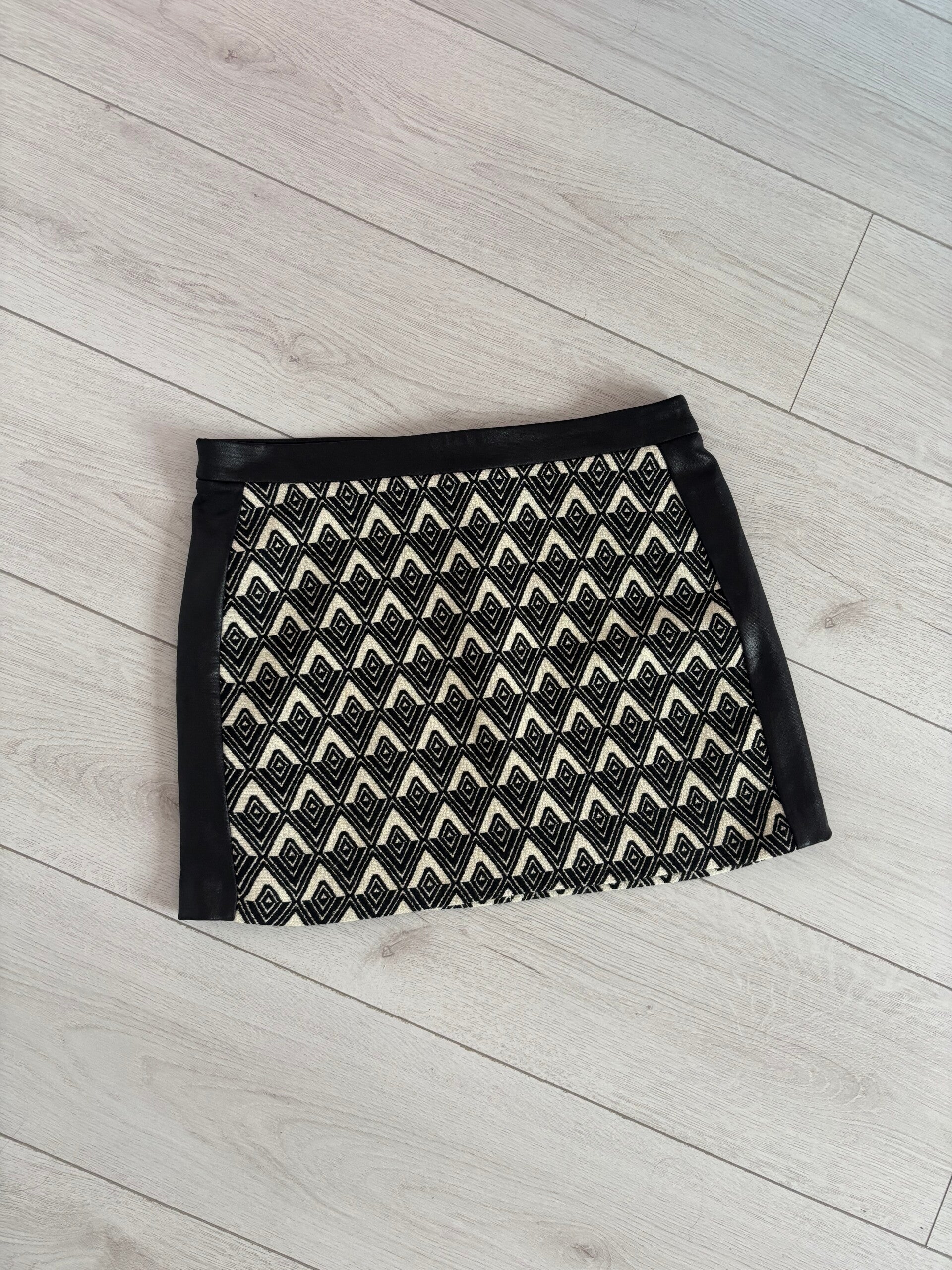 River Island Lined Black Cream Patterned Mini Skirt Size 12
