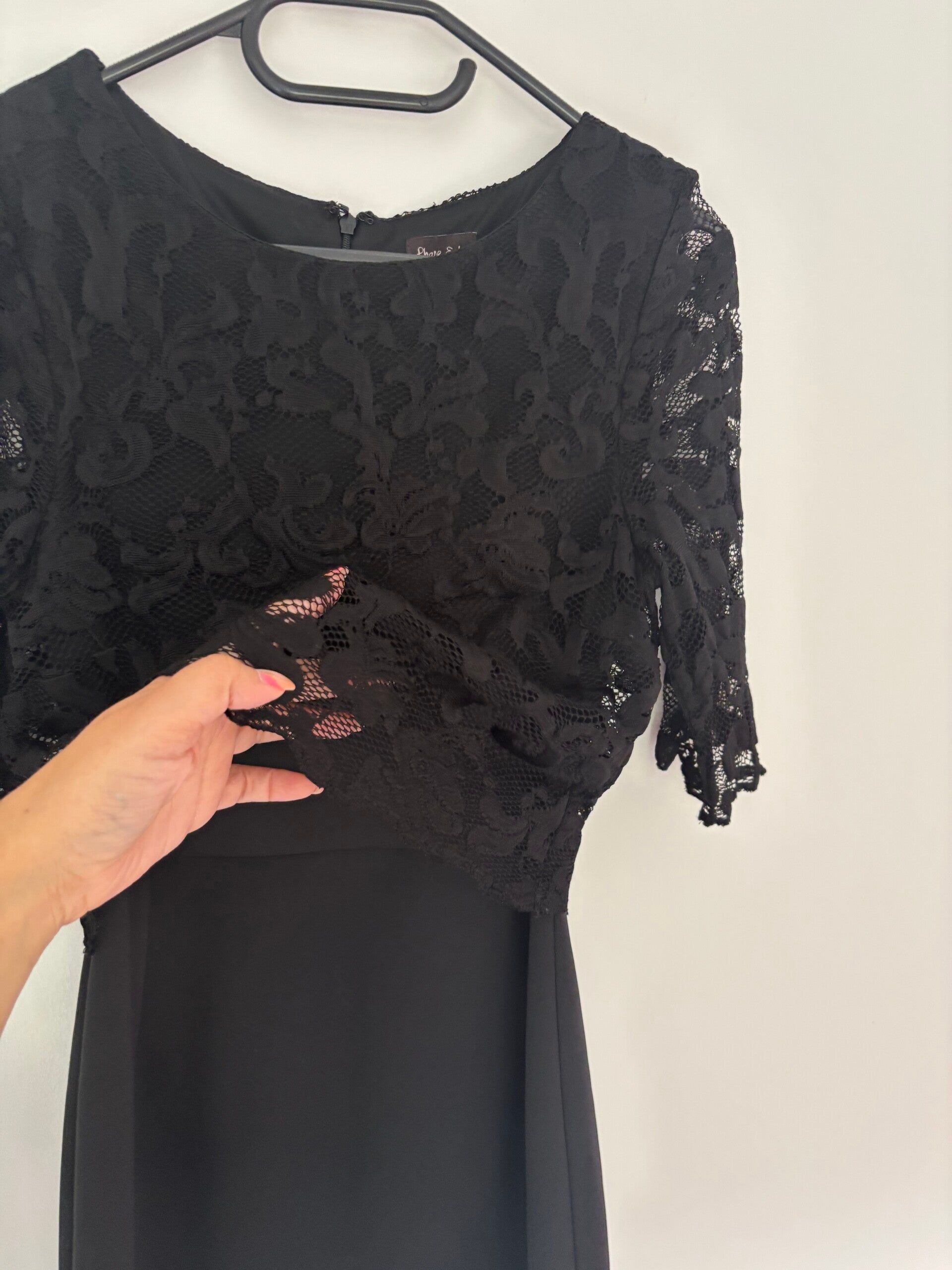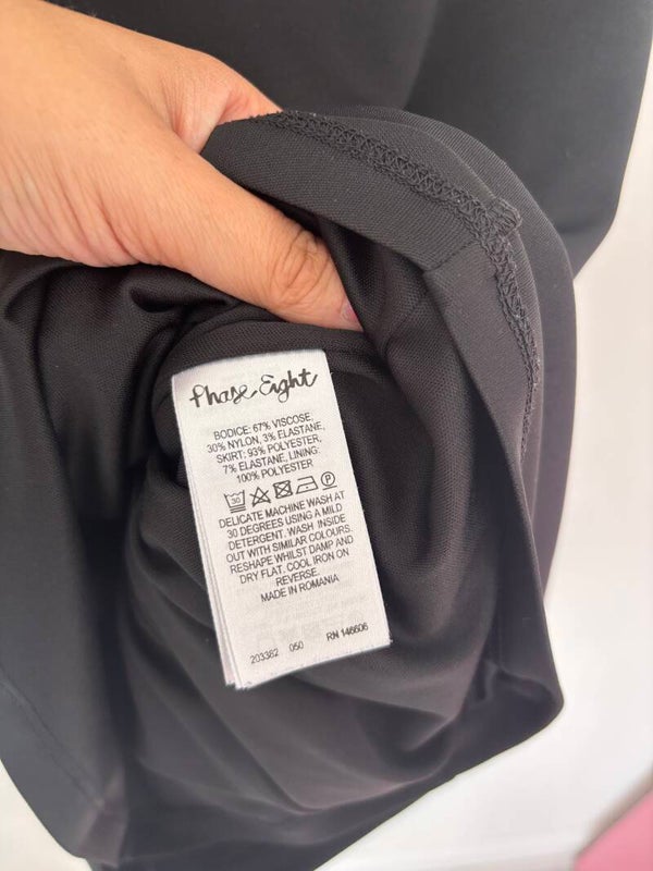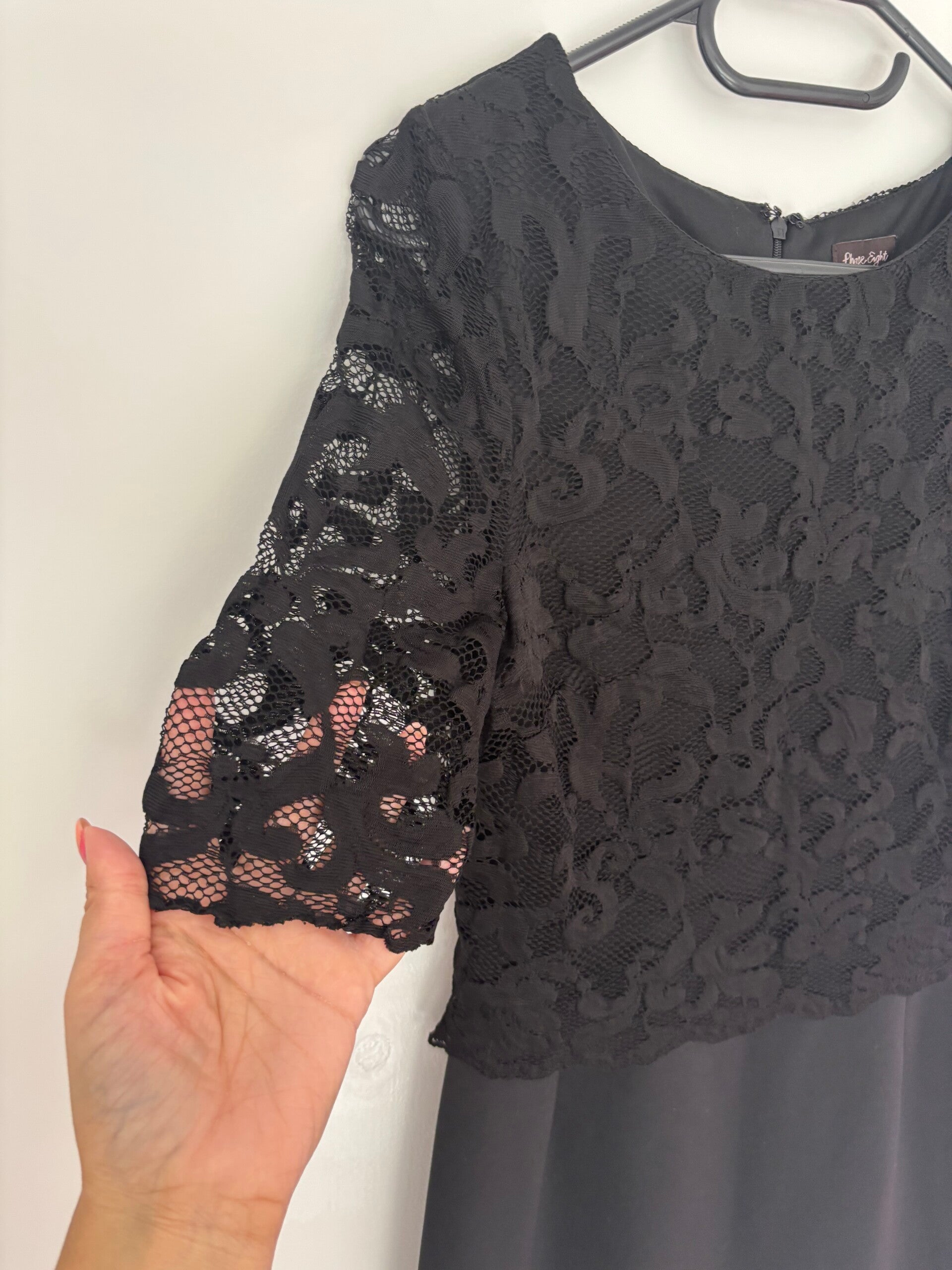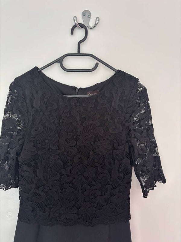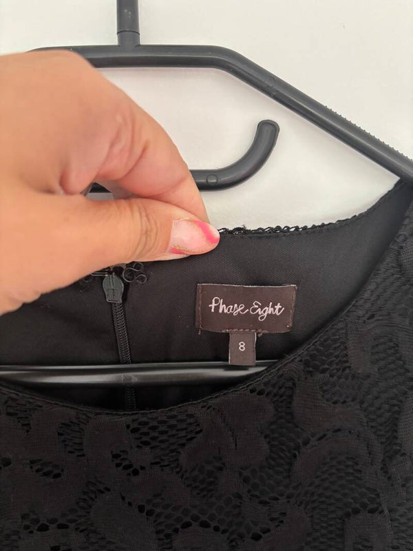 Phase Eight Black Pencil Dress Lace Sleeve Bodice Size 8