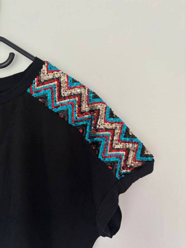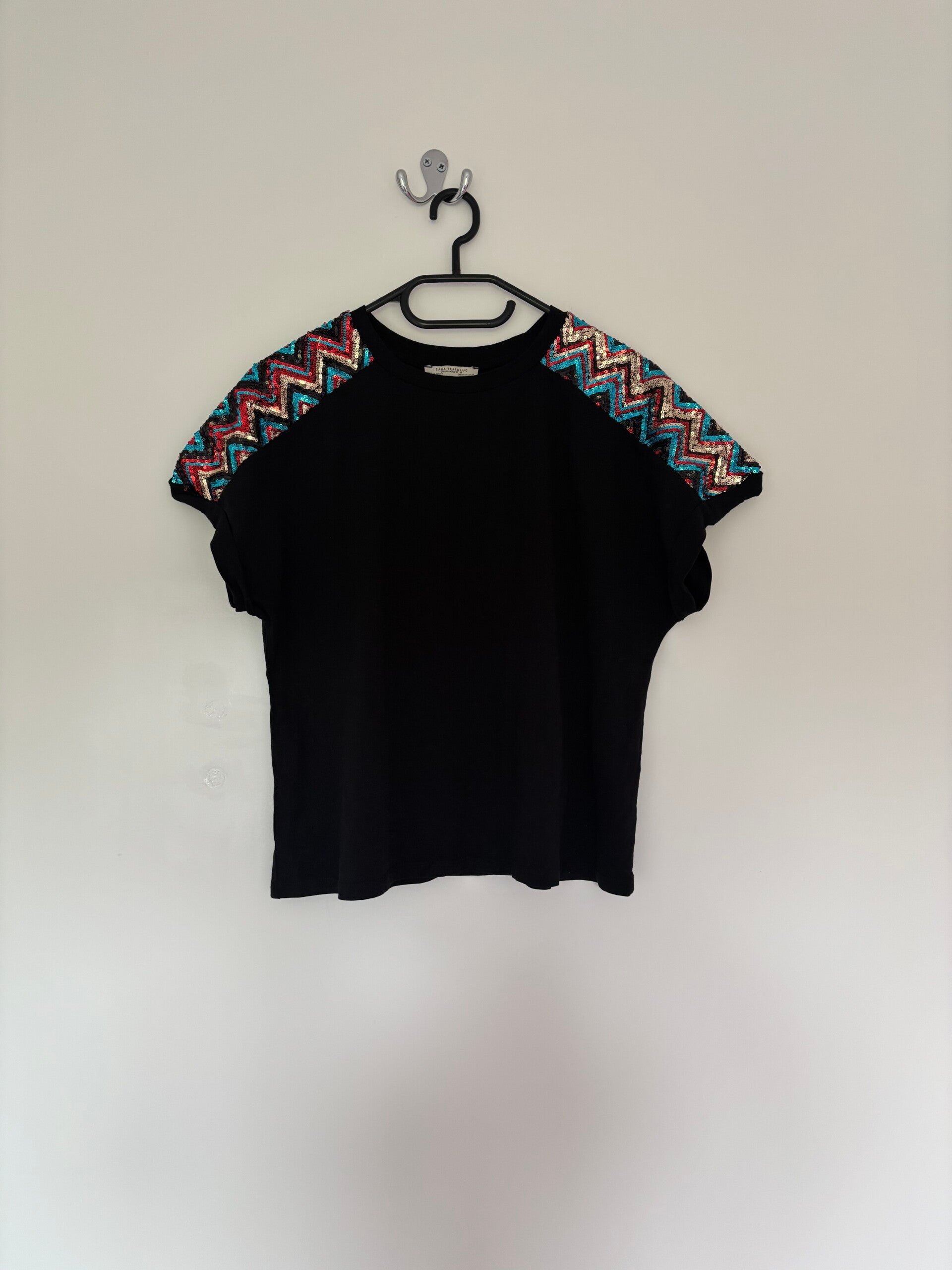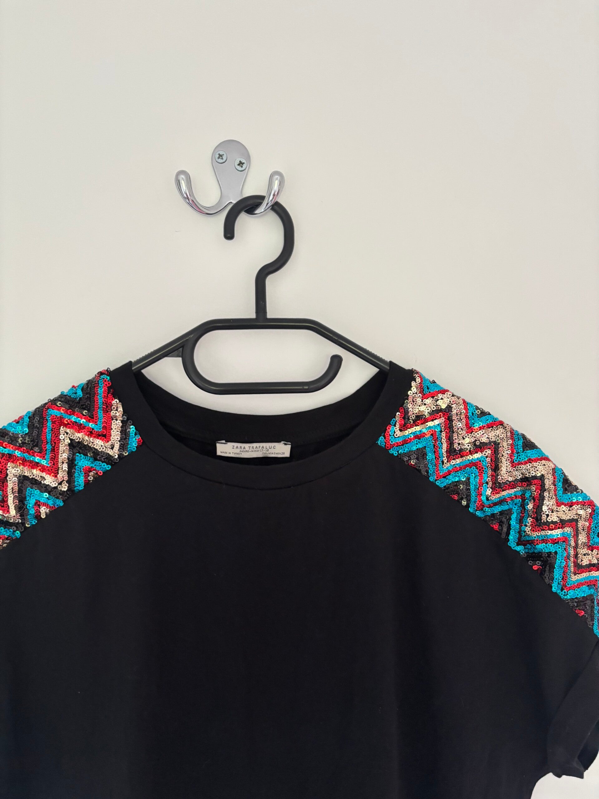 Zara Short Sleeve Casual T-Shirt Top Black Sequins Size S