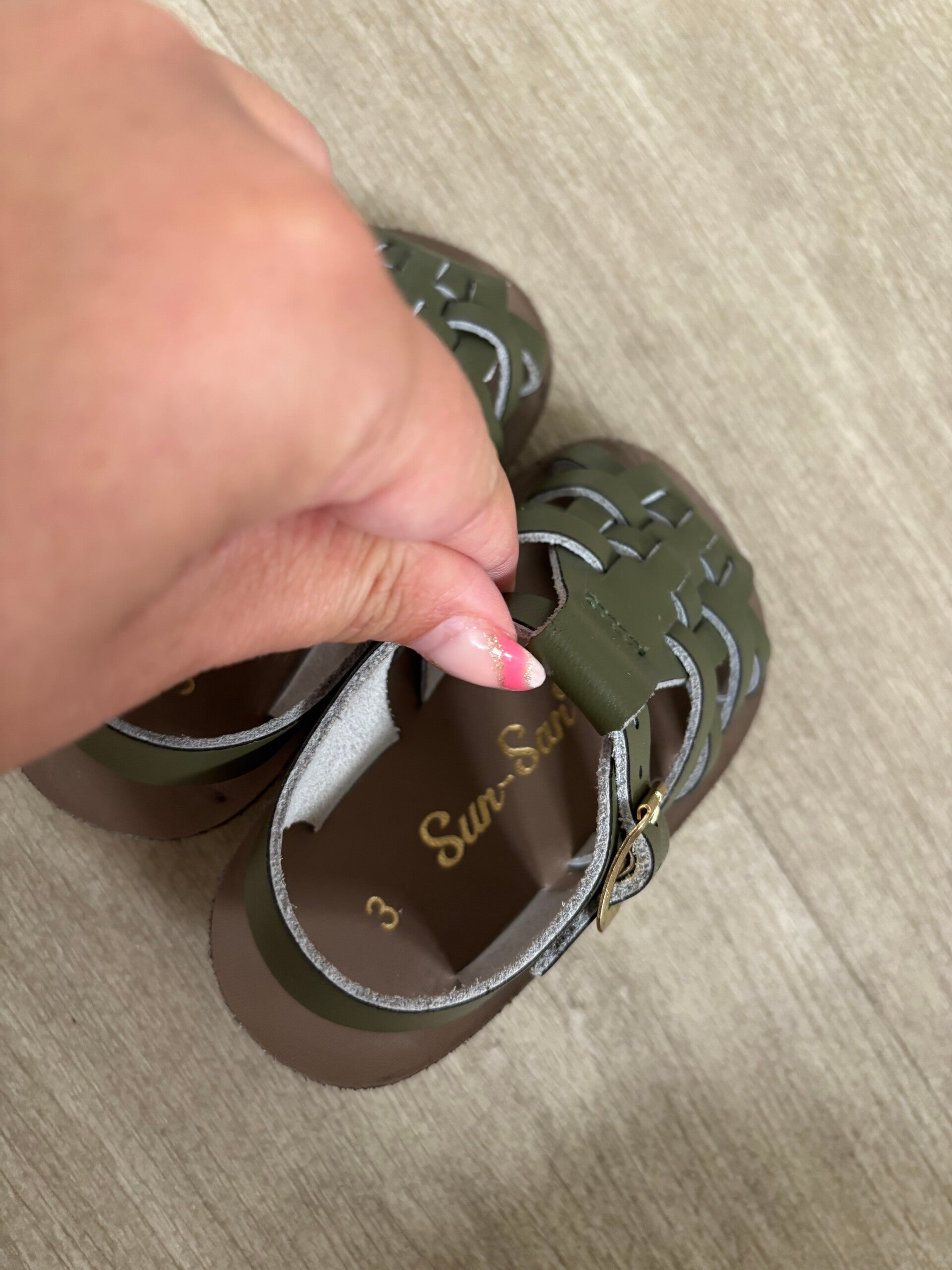 Baby Boy Sun-San Khaki Summer Leather Sandals Size 3 Infant