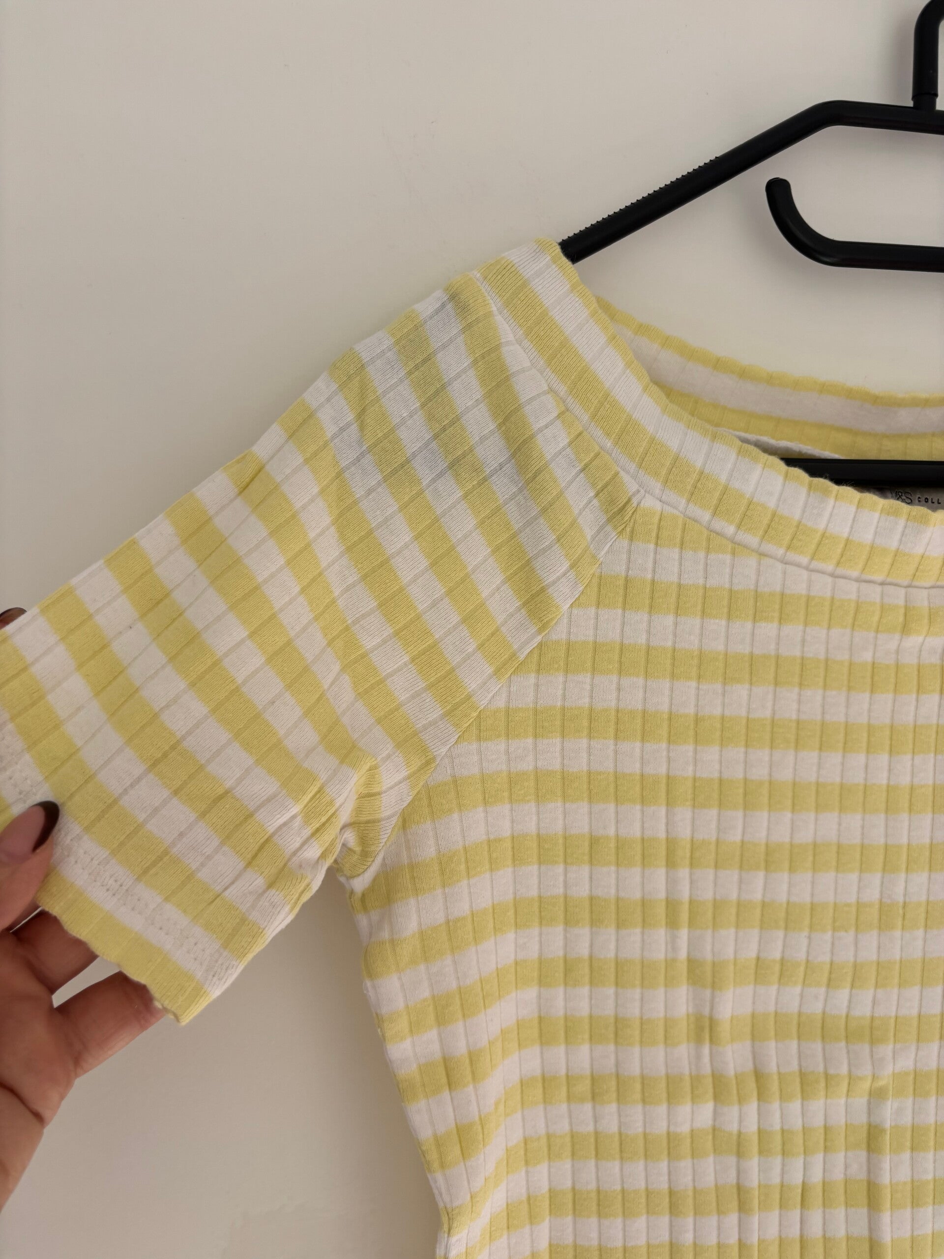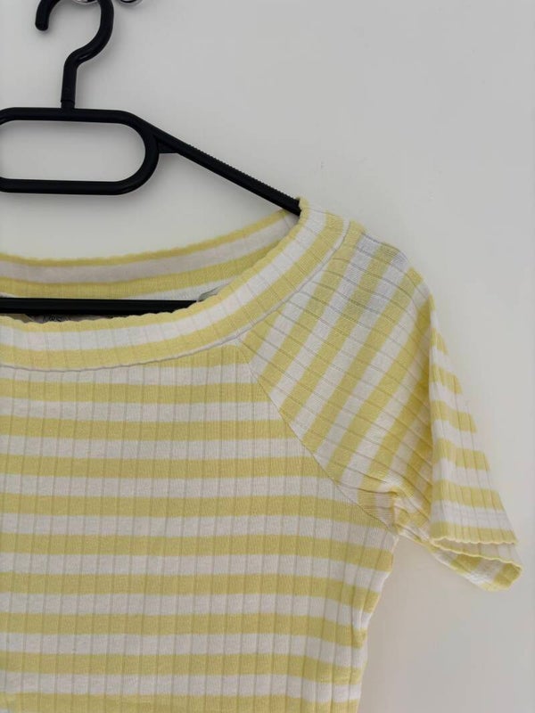 M&S Collection Short Sleeve Boat Neck Yellow Striped Top Size 10