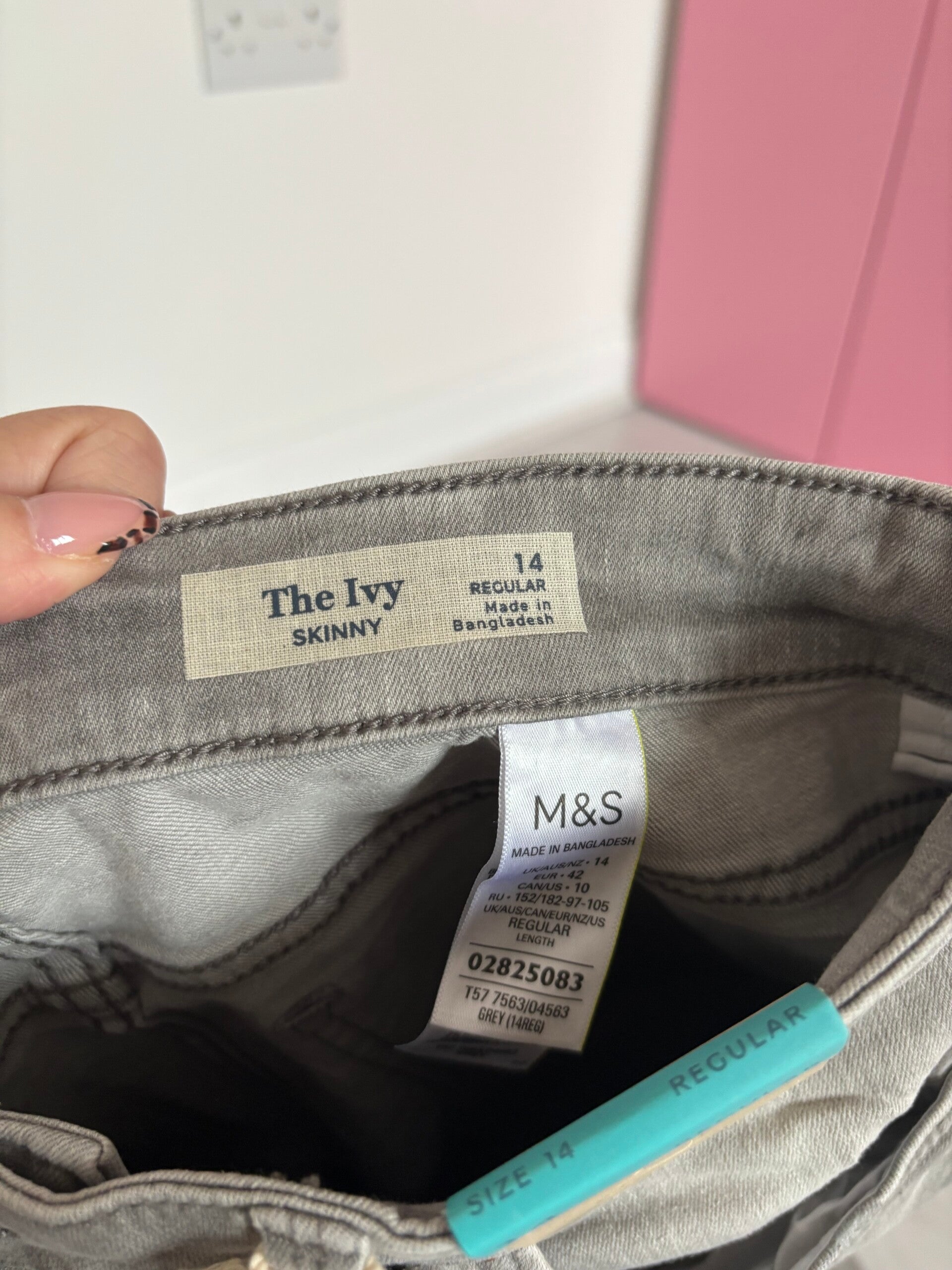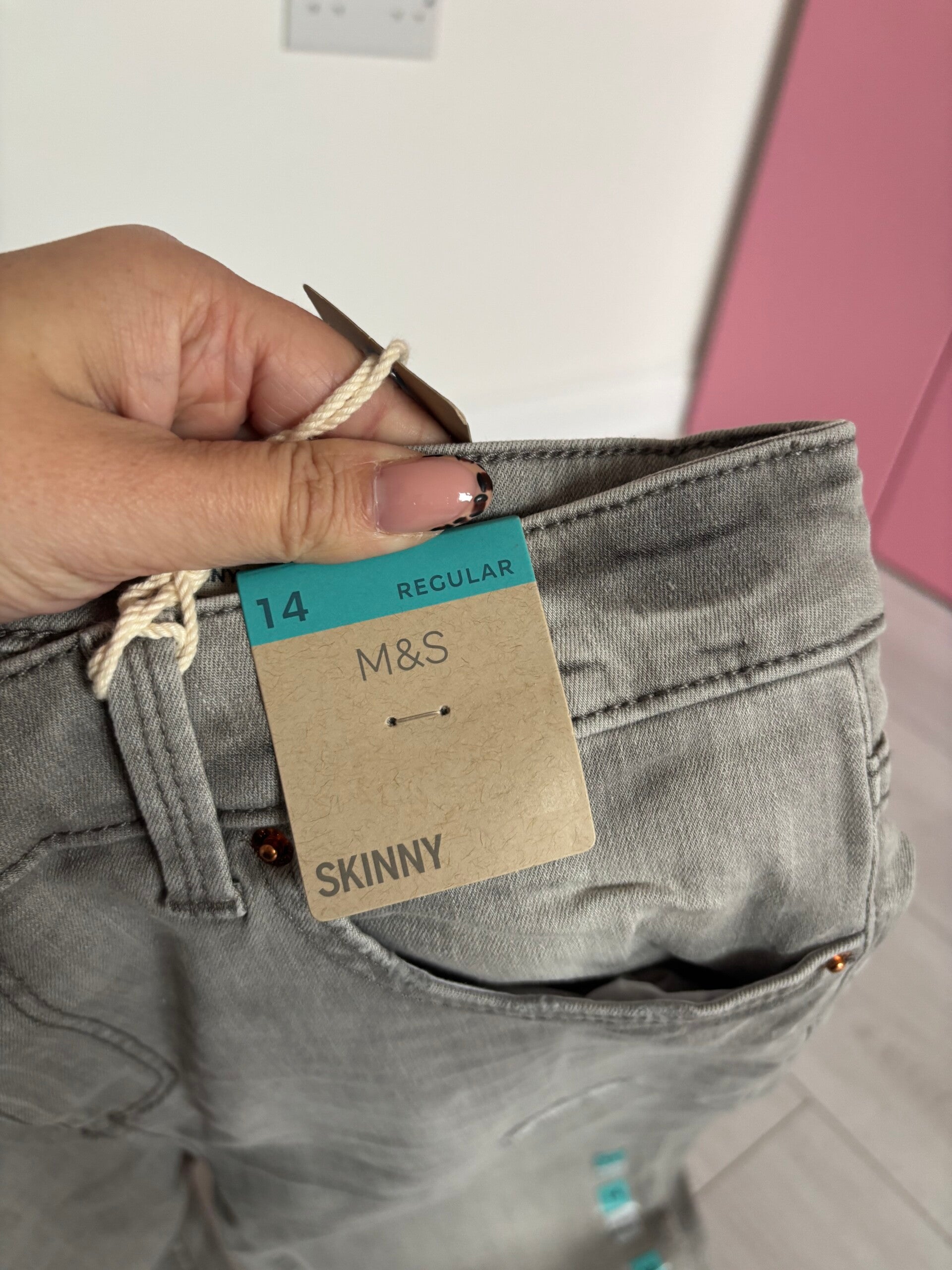 M&S The Ivy Skinny Regular Length Jeans Grey Size 14
