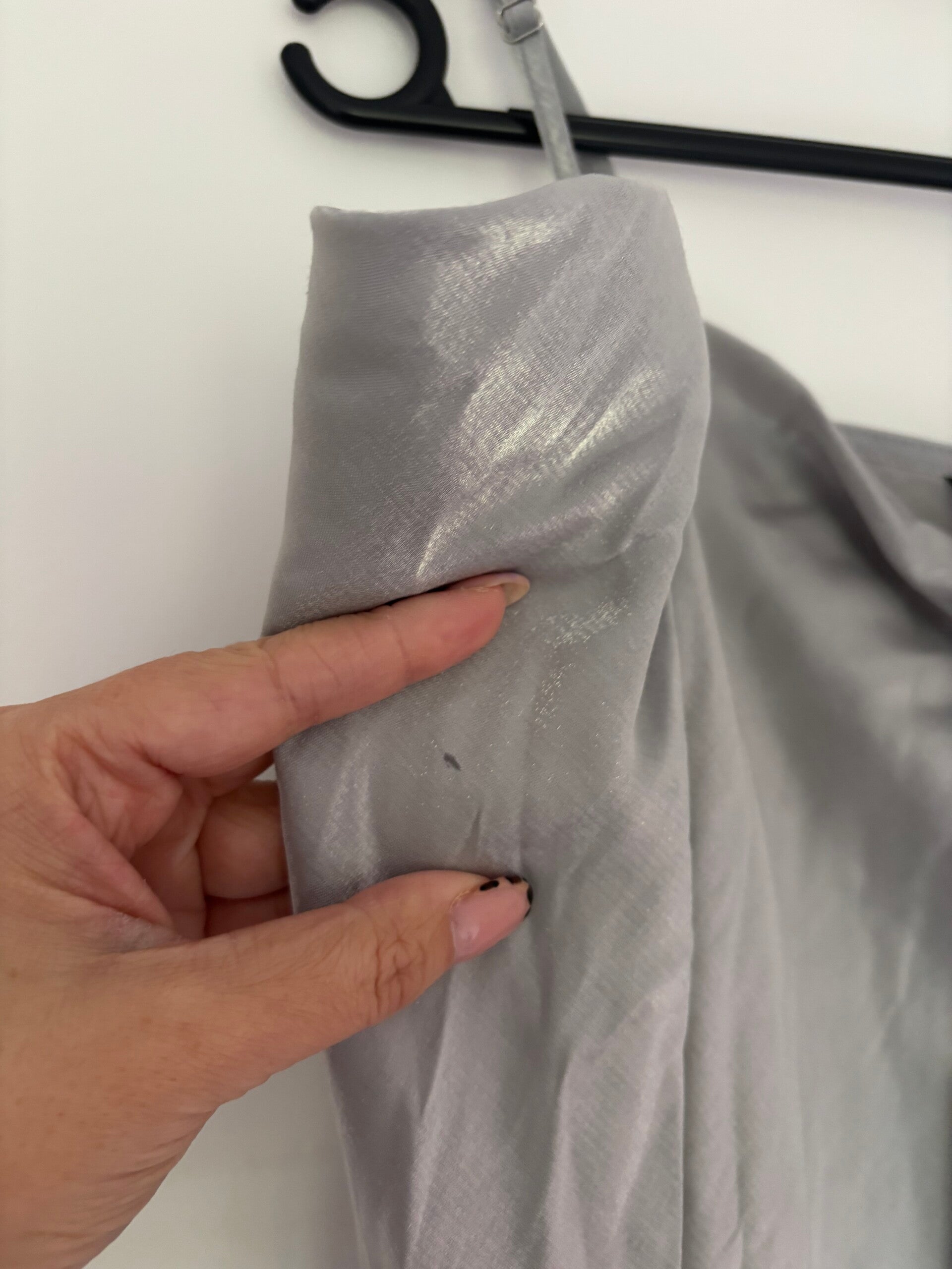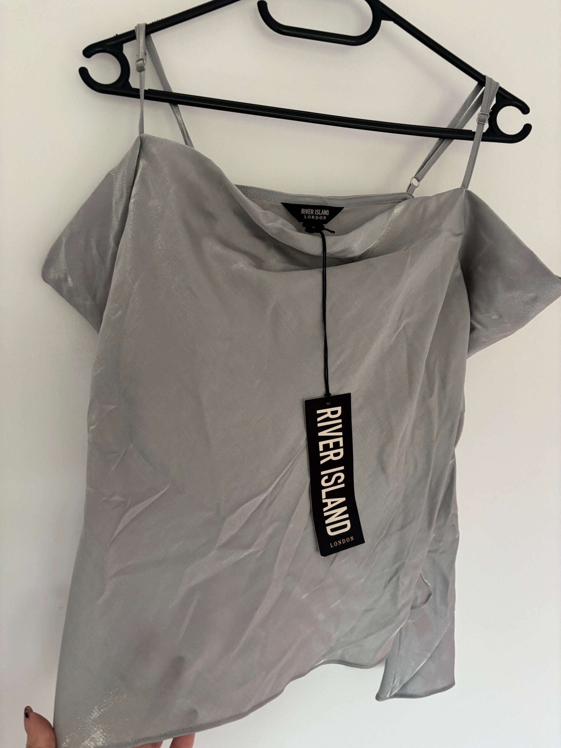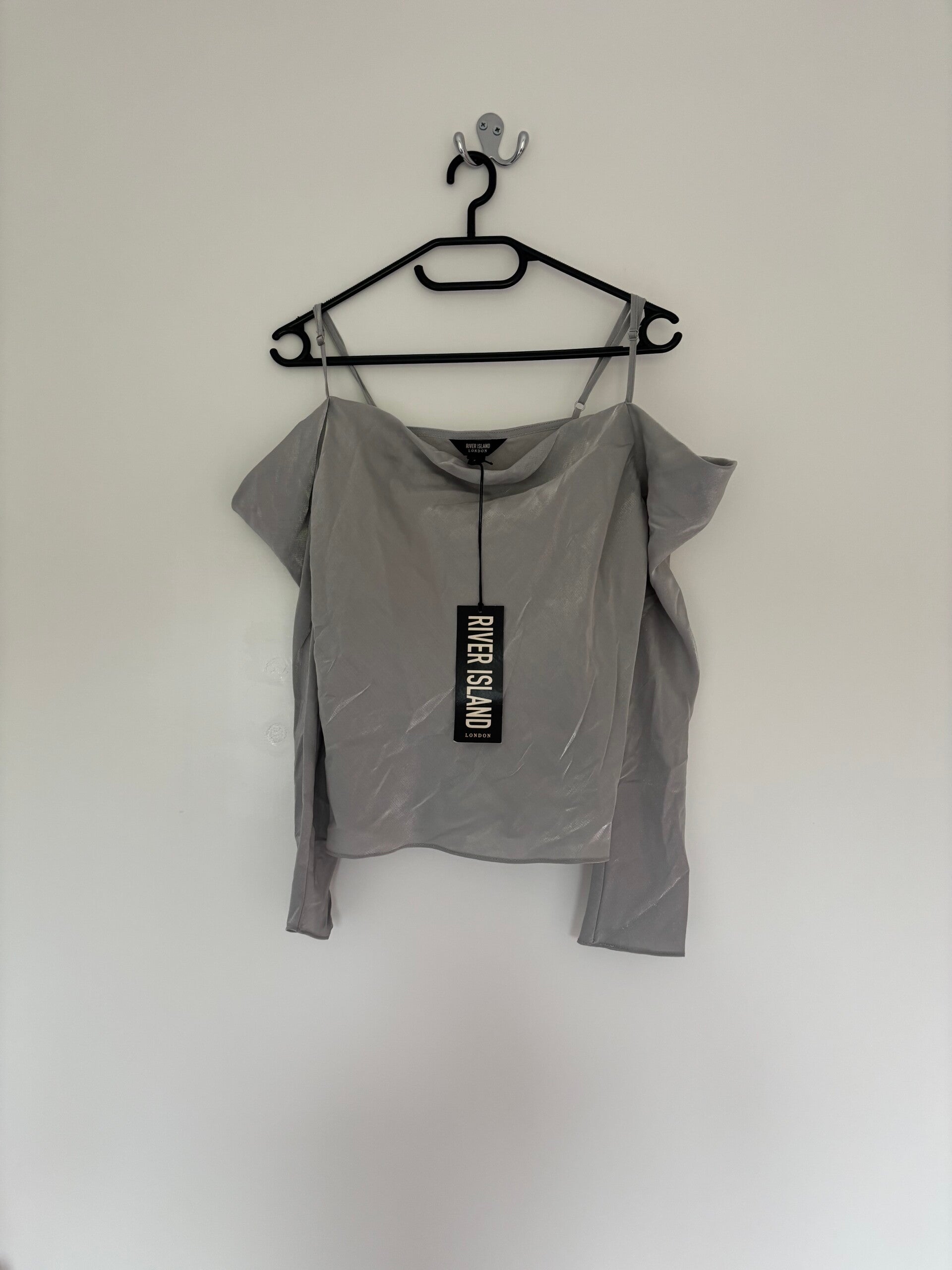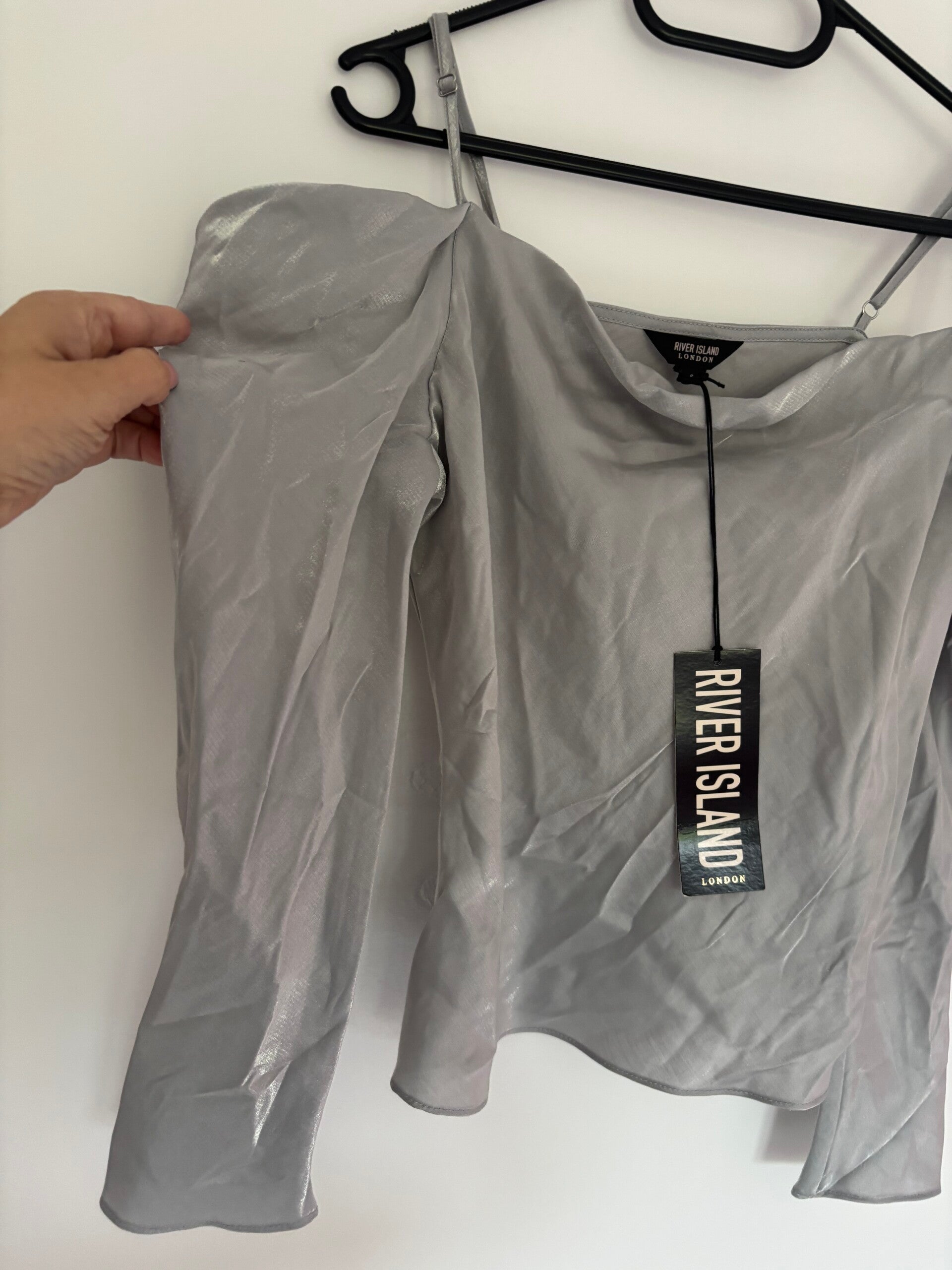River Island Long Off Shoulder Sleeve Silver Shimmer Blouse