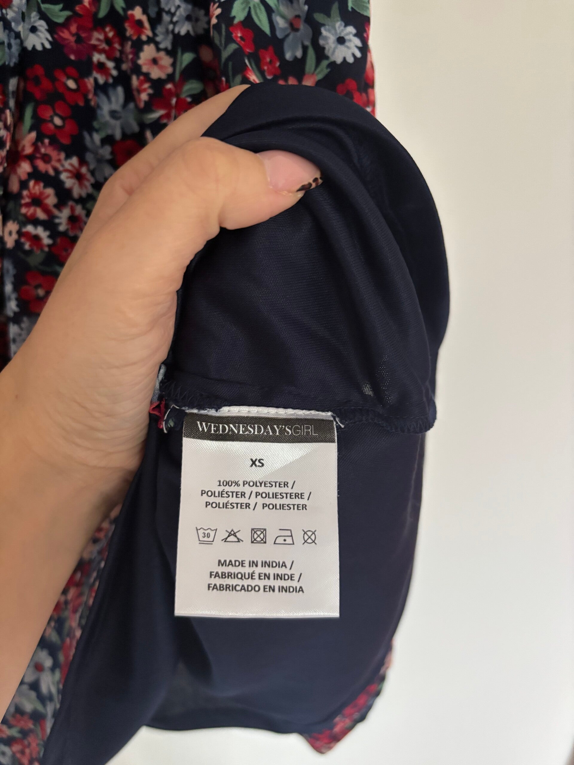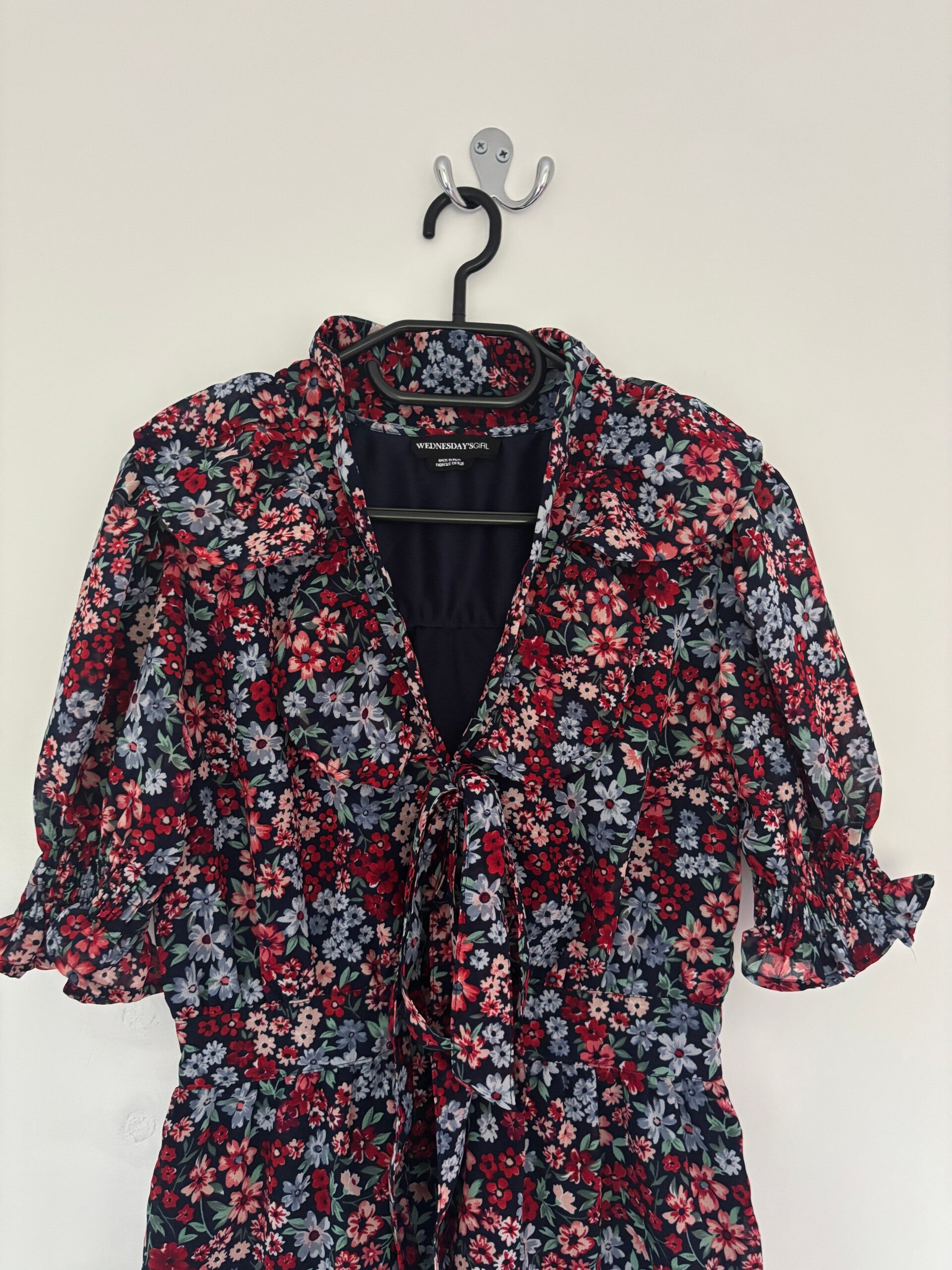 Wednesday's Girl Short Sleeve Floral Lined V-Neck Dress Size XS