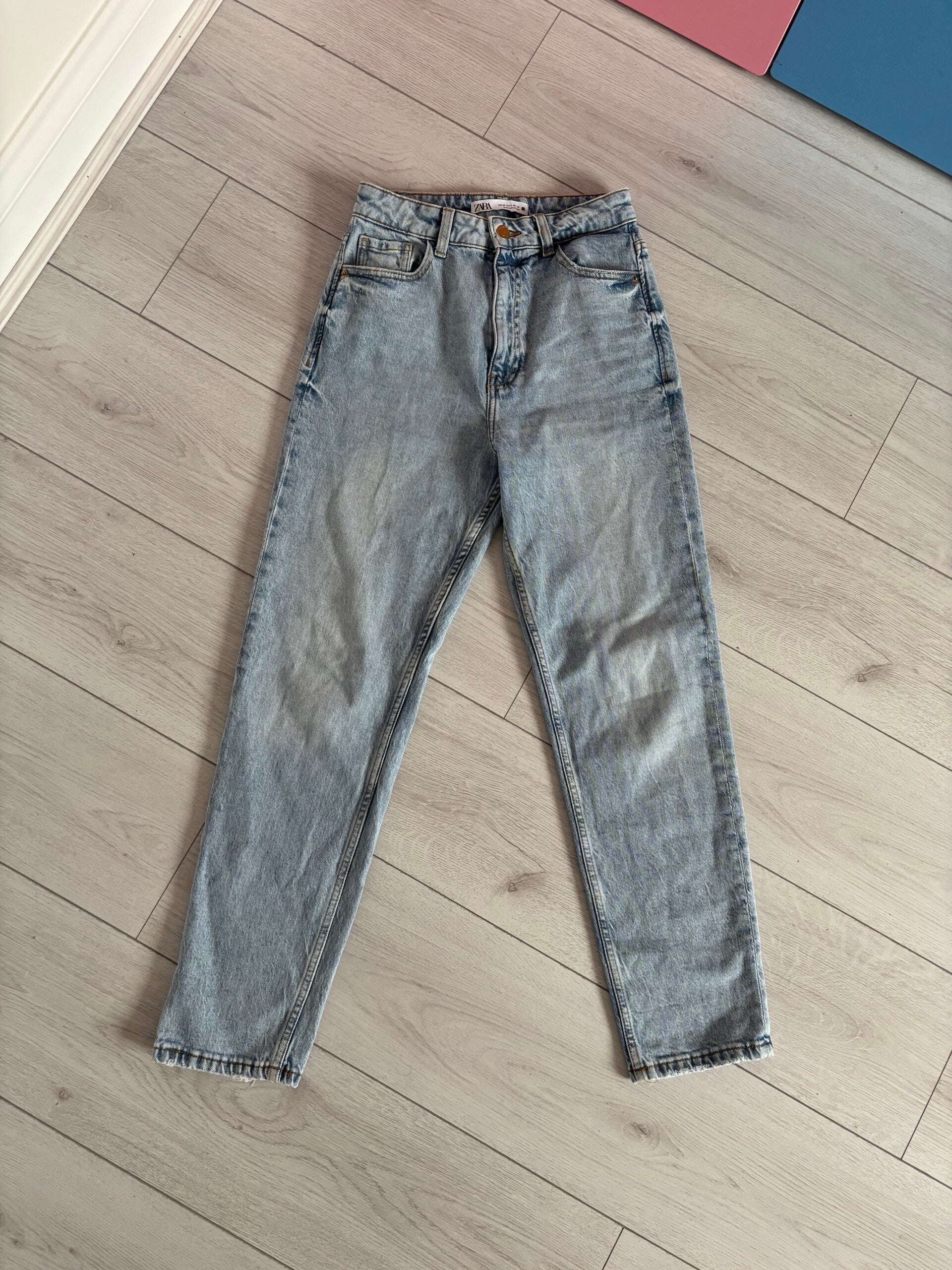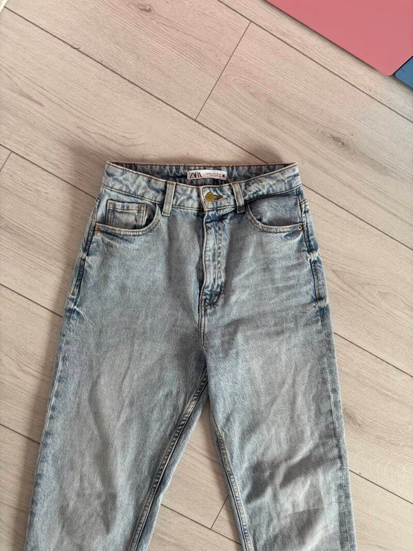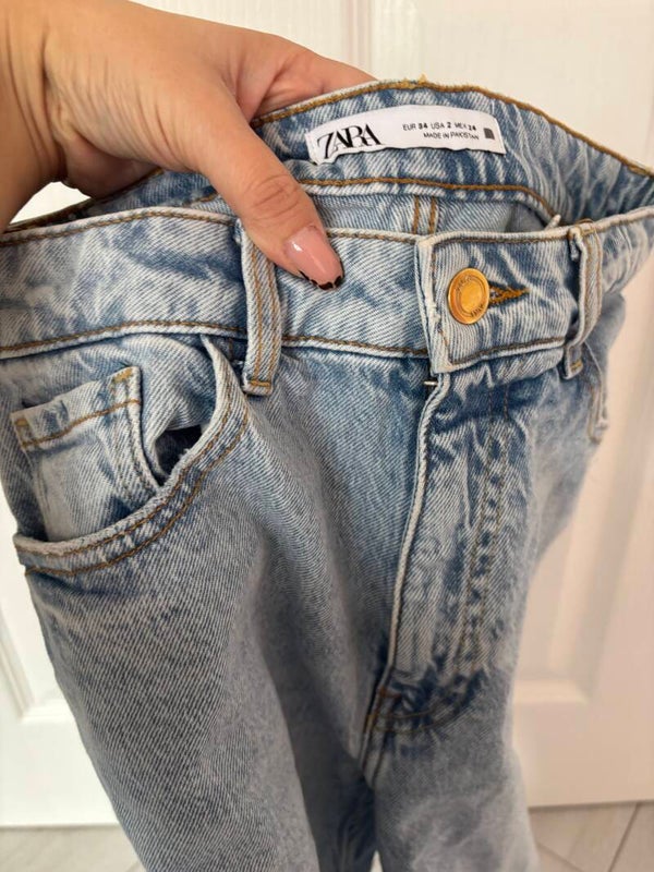 Zara High Waisted Mom Jeans Light Blue Size 34 UK 6