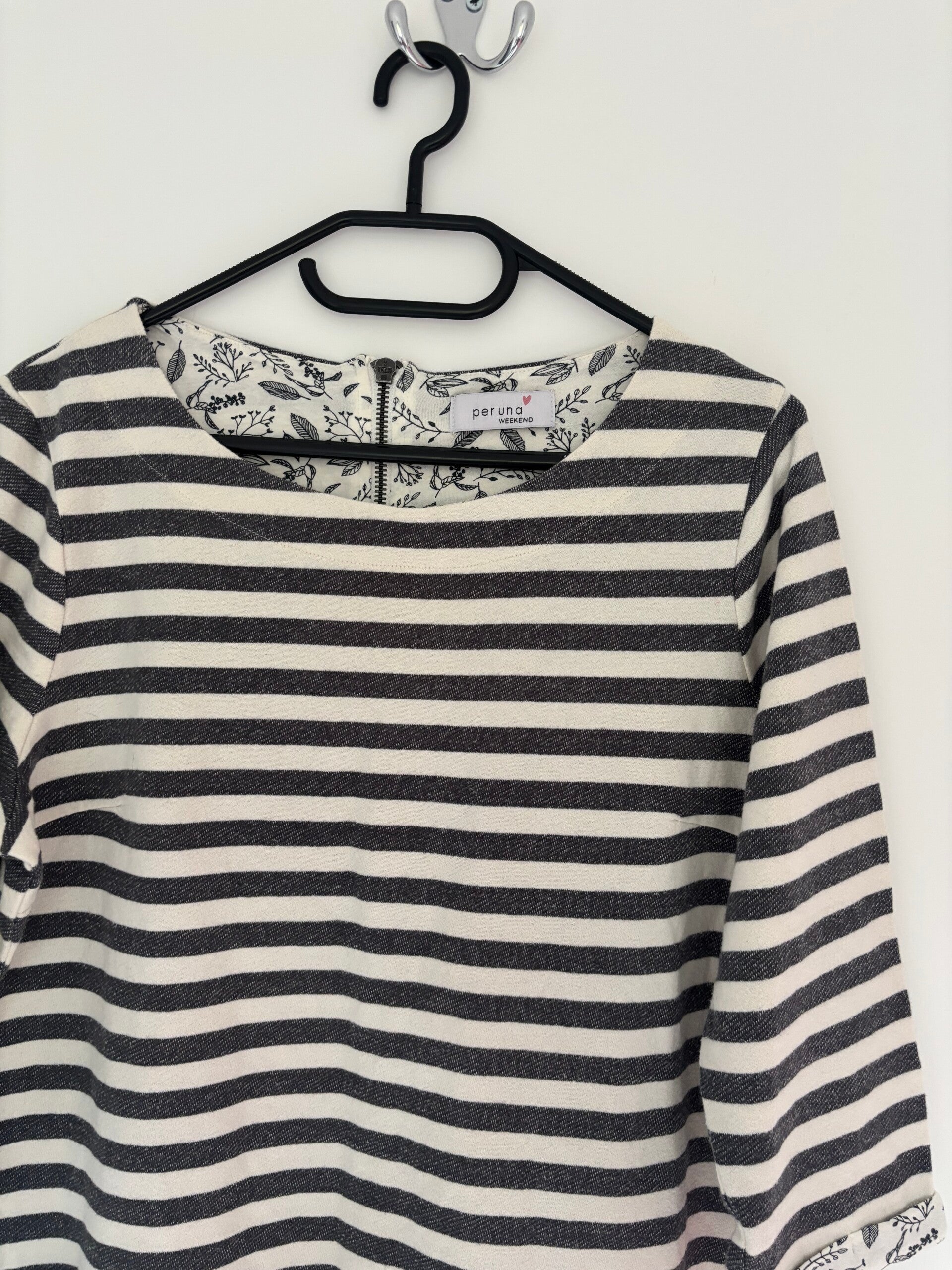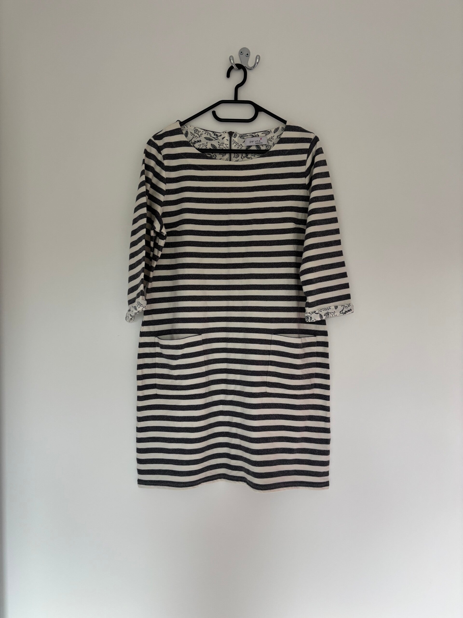 M&S Per Una Weekend 3/4 Sleeve Grey Striped Shift Dress Size 14