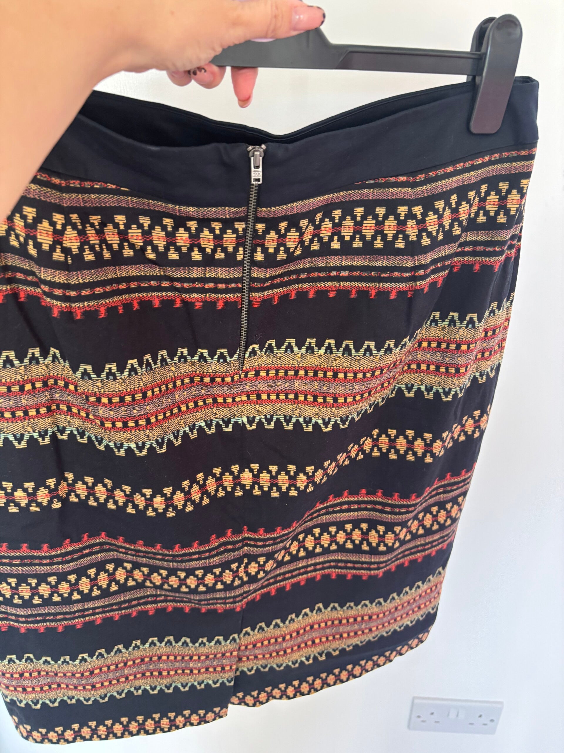 M&S Woman Black Multi Straight Midi Lined Skirt Size 14