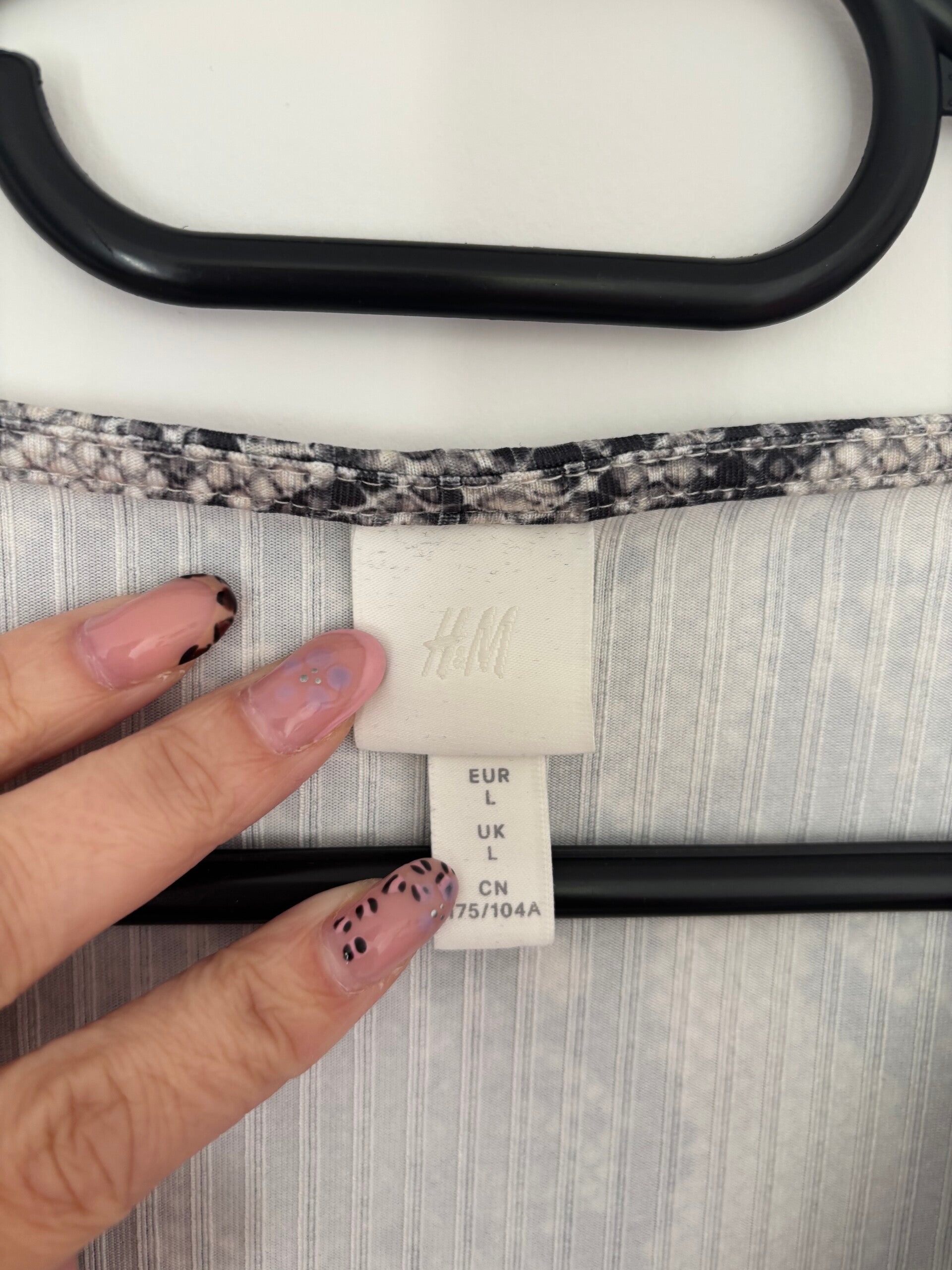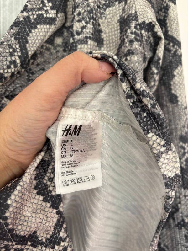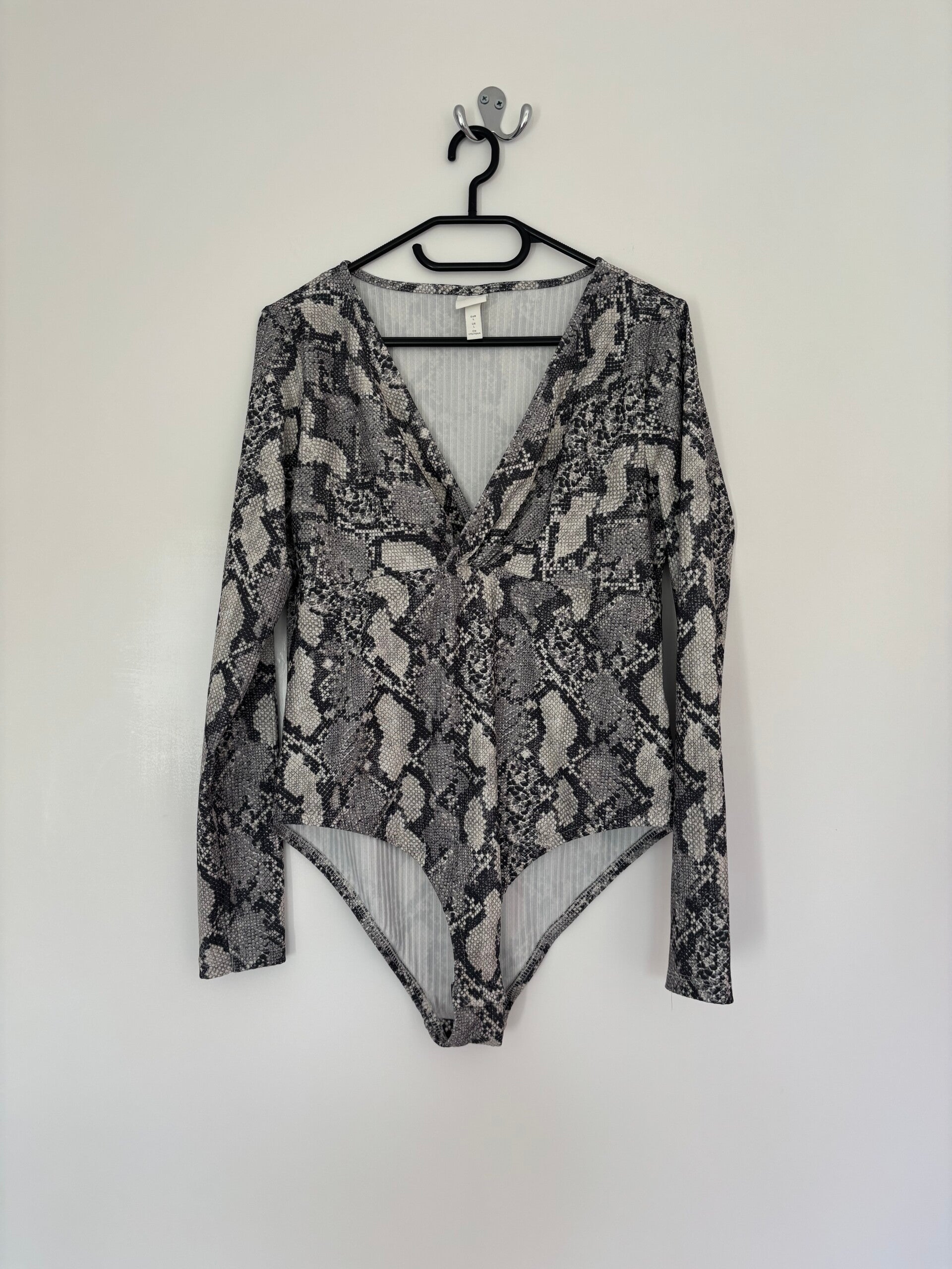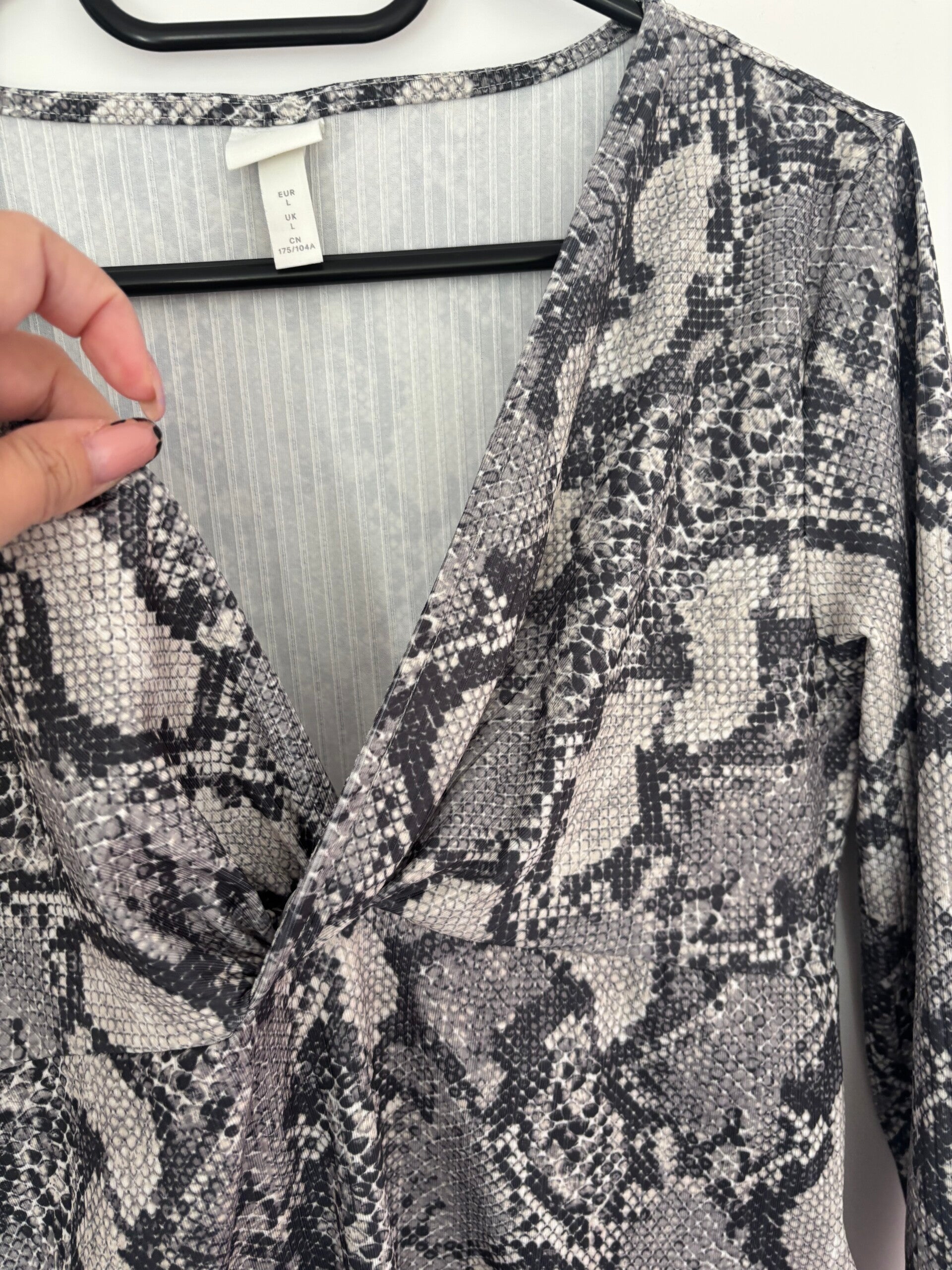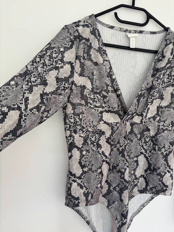 H&M Long Sleeve V-Neck Snake Skin Effect Bodysuit Size L