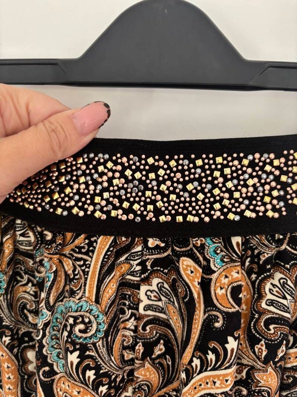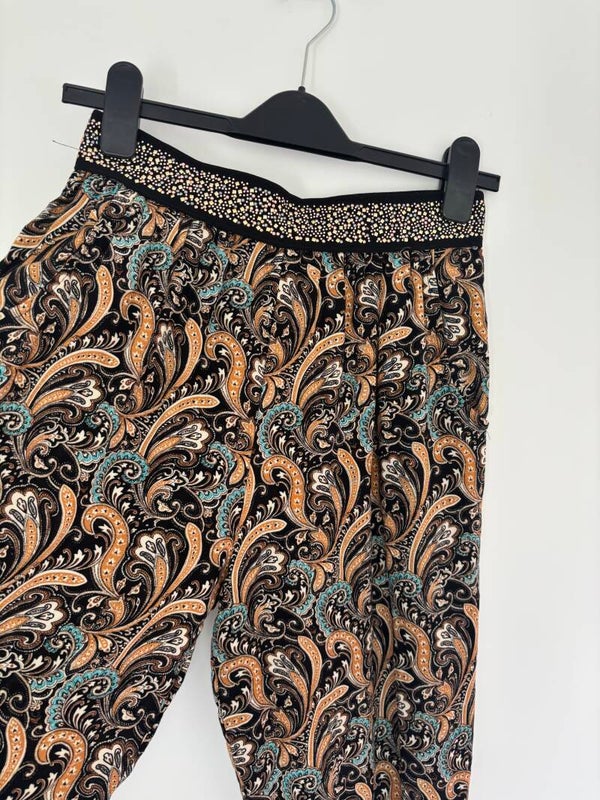 Mizumi Patterned Harem Trousers Jewelled Elastic Waist Size M/L