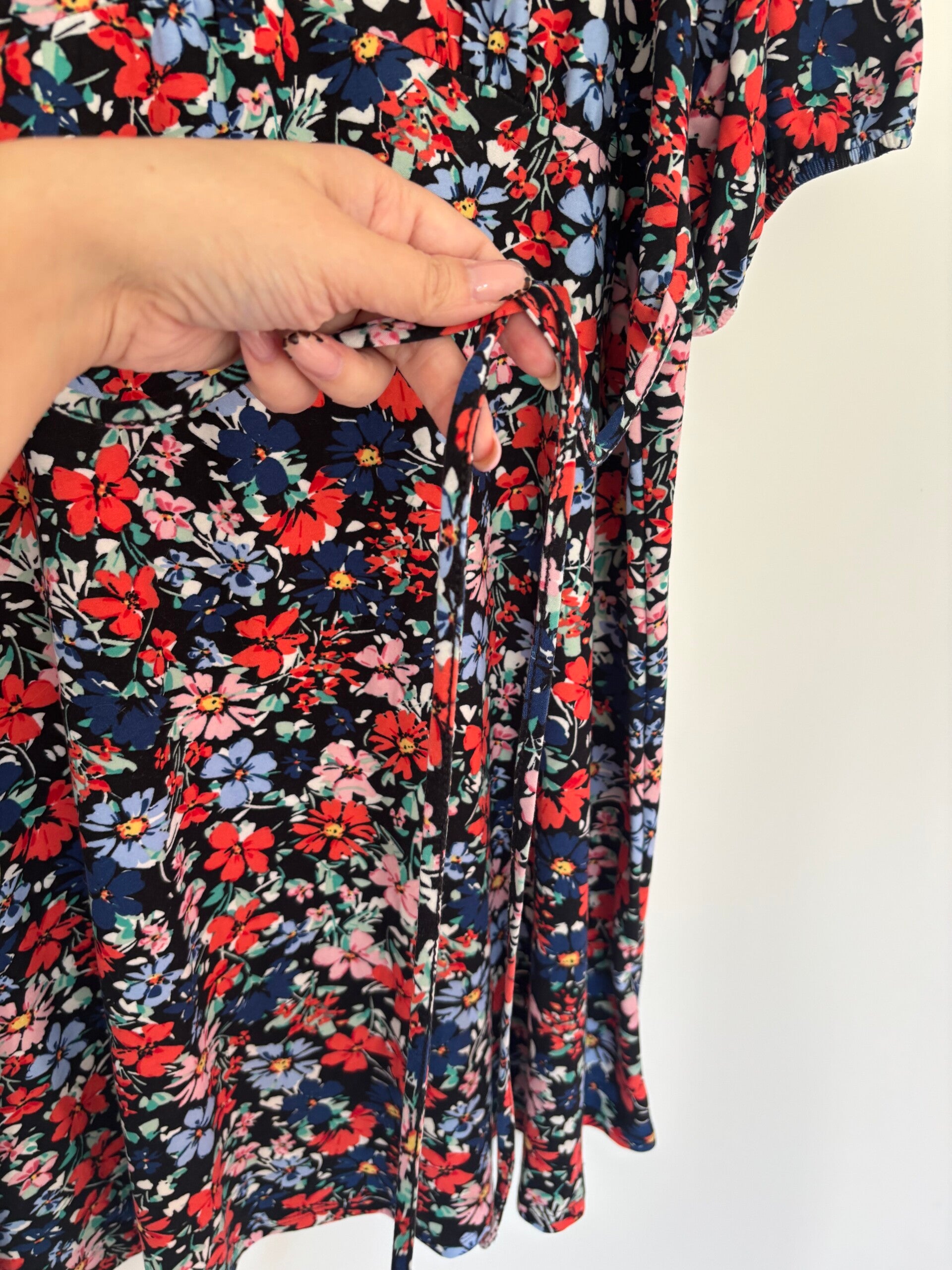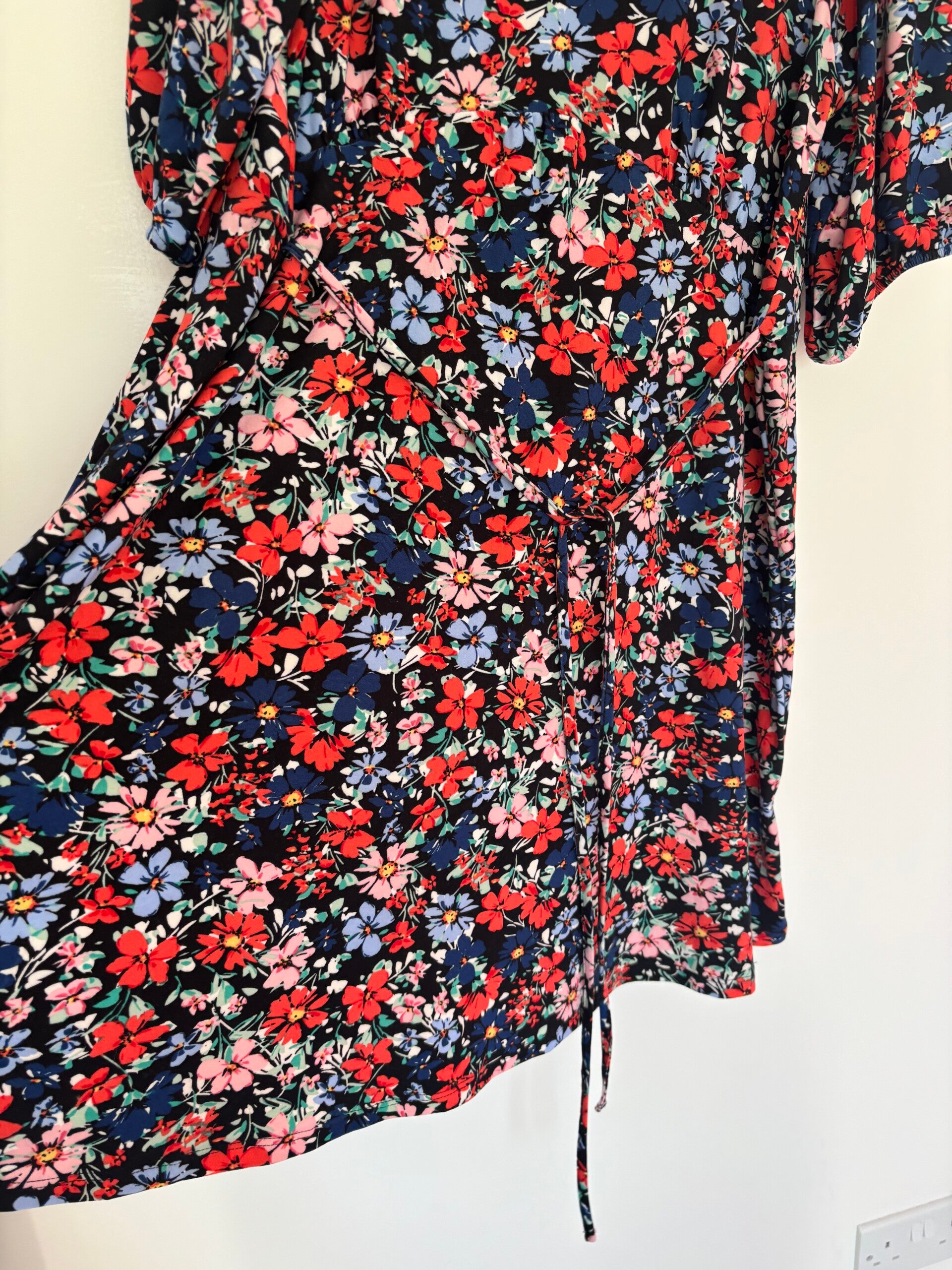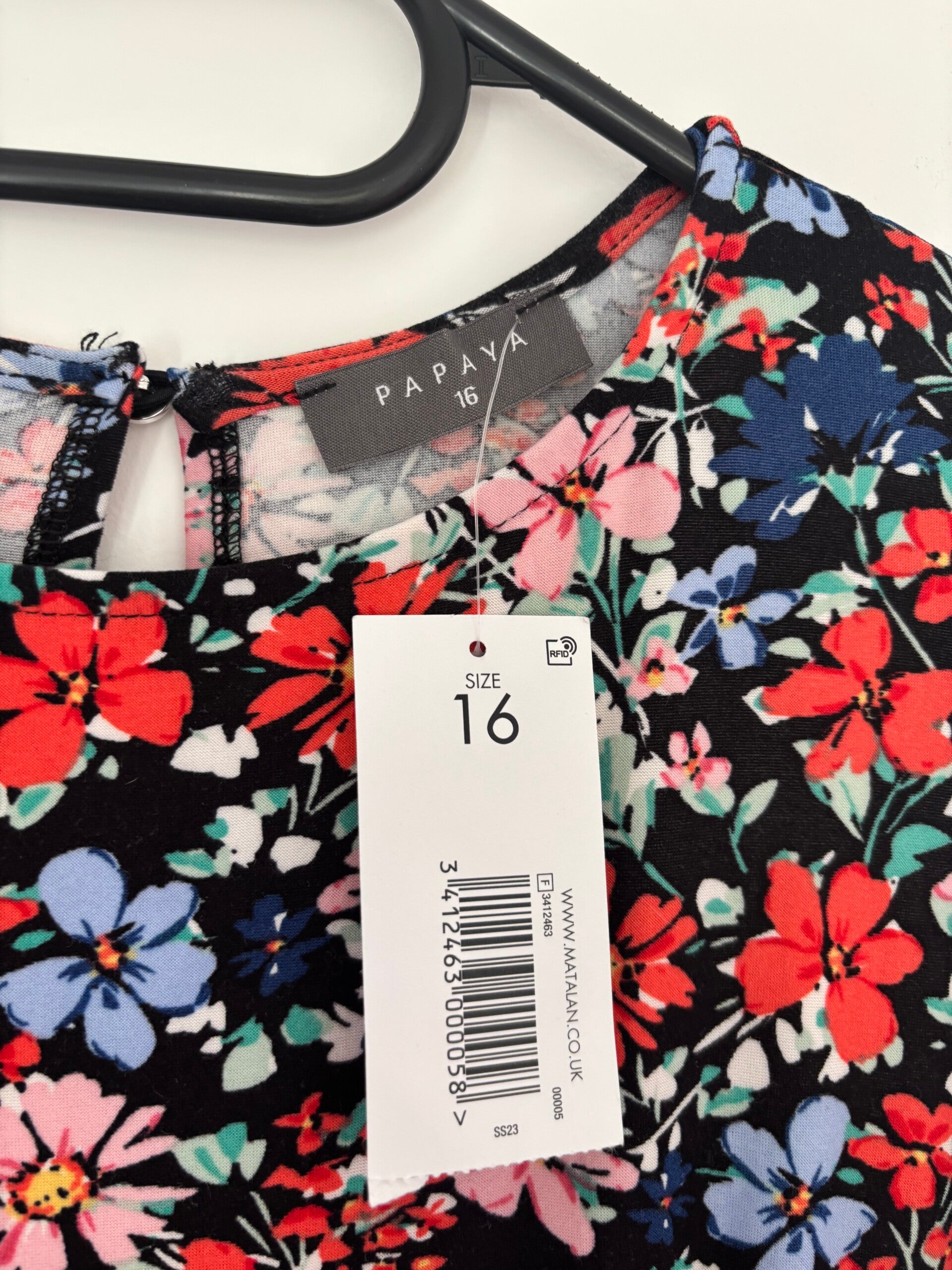Matalan Papaya Short Sleeve Black Floral Belted Dress Size 16