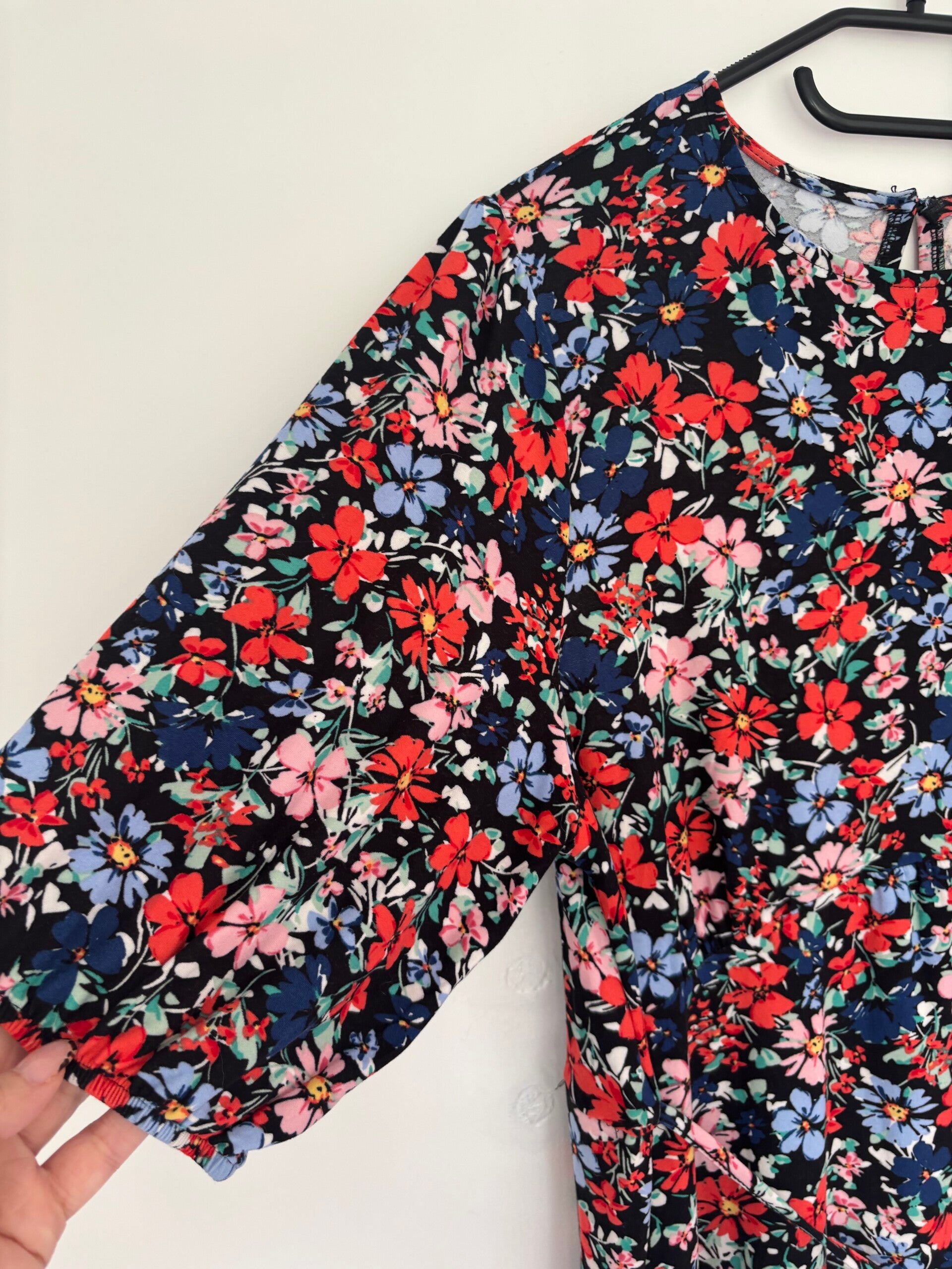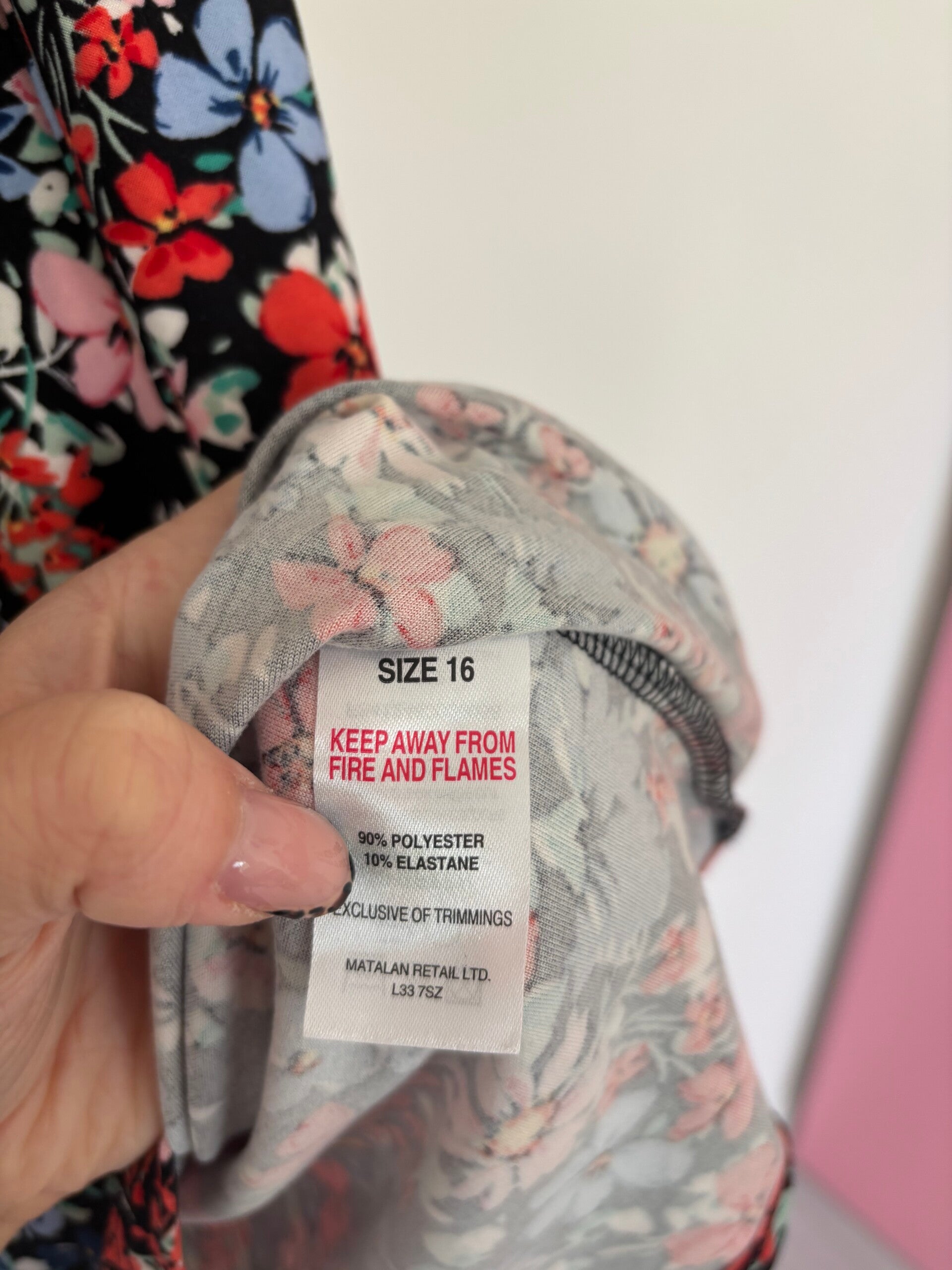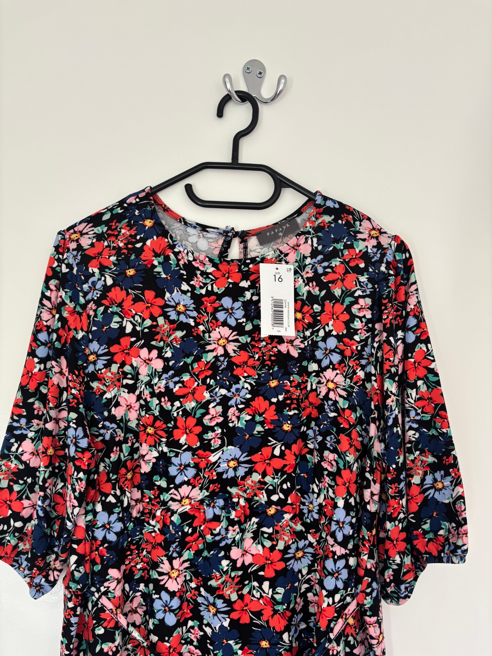 Matalan Papaya Short Sleeve Black Floral Belted Dress Size 16