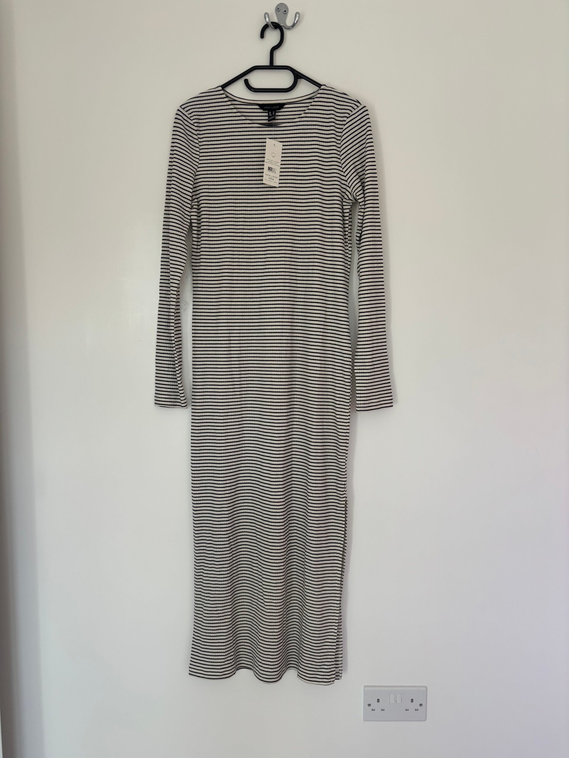 New Look Long Sleeve Striped Long Maxi Dress Size 14