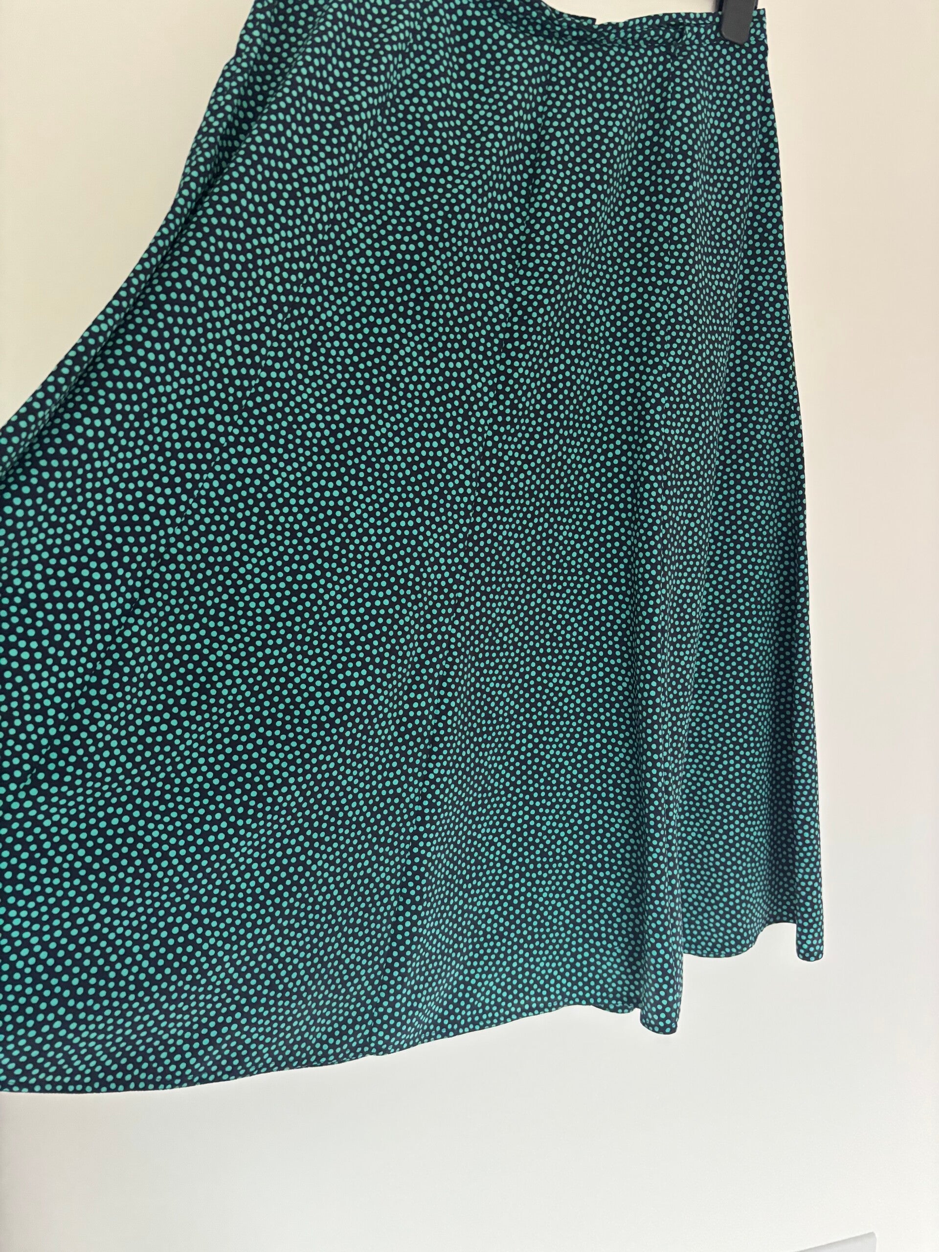 Viyella Vintage Green Spotted Navy Lined Maxi Long Skirt Size 16