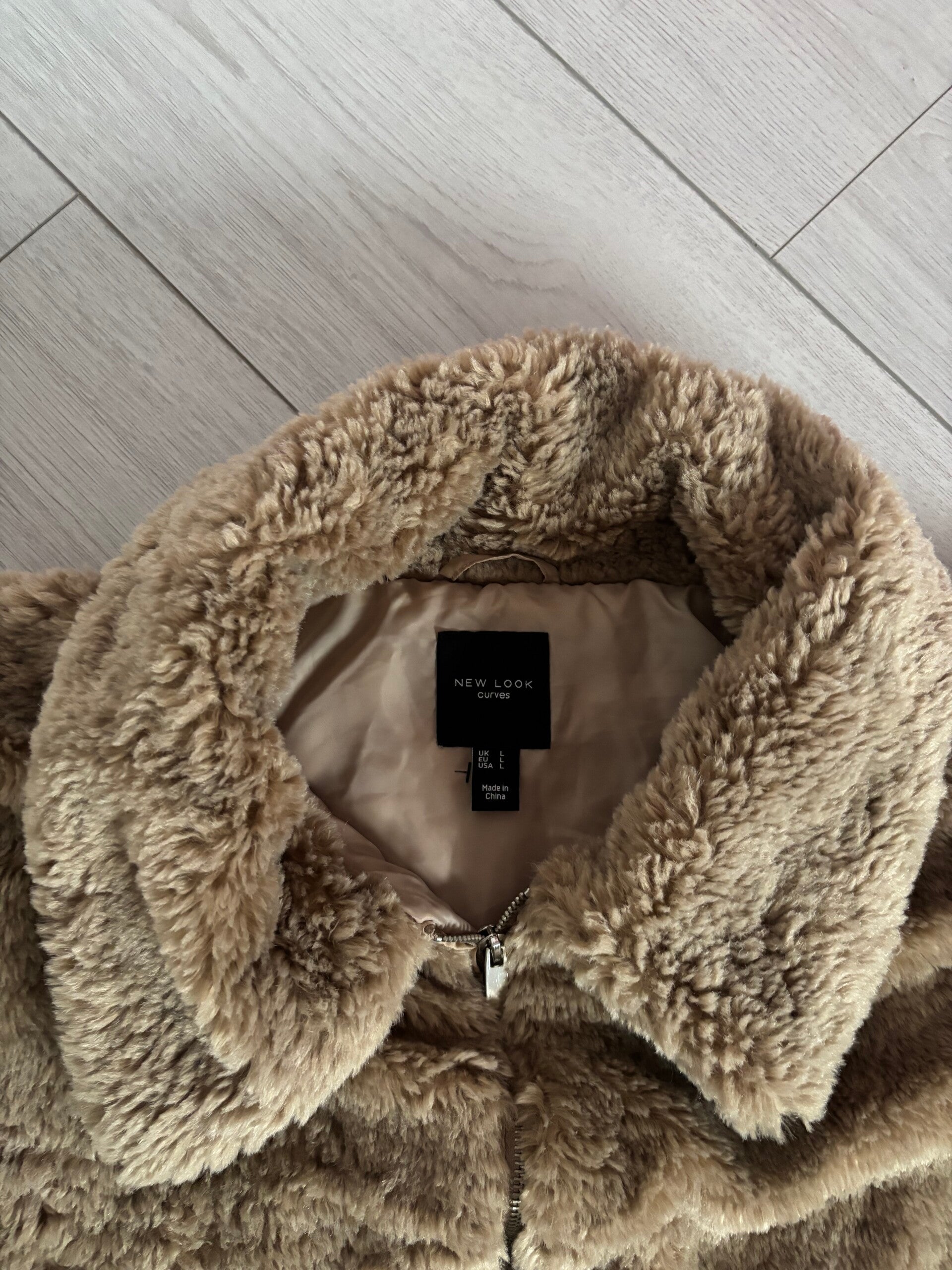 New Look Curves Collared Faux Fur Coat Jacket Size UK 26-28