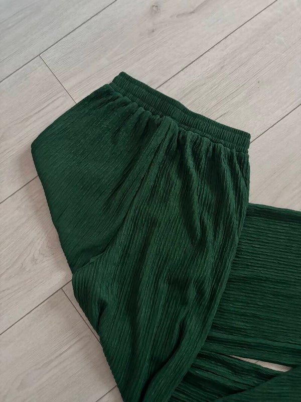 Shein High Waisted Wide Leg Trousers Dark Green Size S