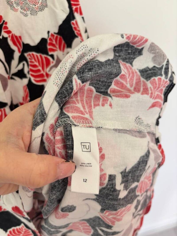 Tu Sleeveless Linen Viscose Midi Shift Dress Size 12