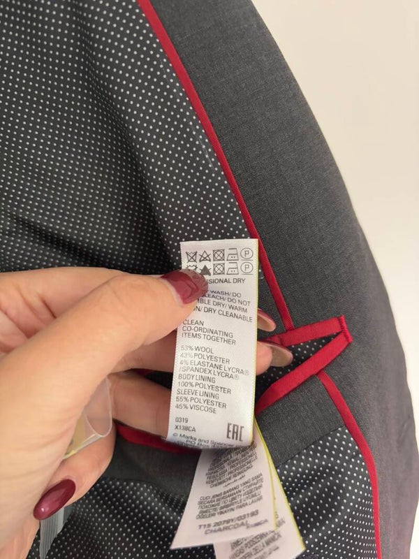 Men's M&S Wool Rich Blend Suit Jacket Charcoal Size Chest 42" Regular