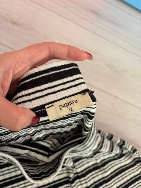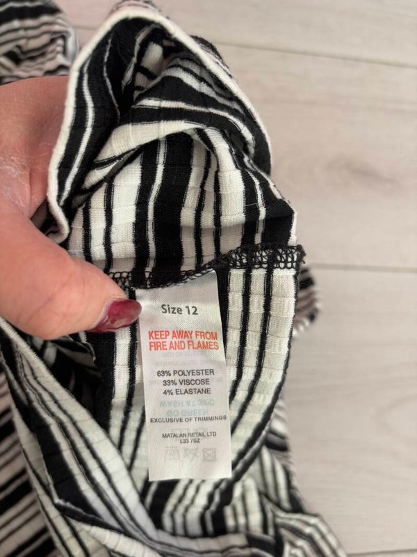 Matalan Papaya White Black Striped Straight Midi Skirt Size 12