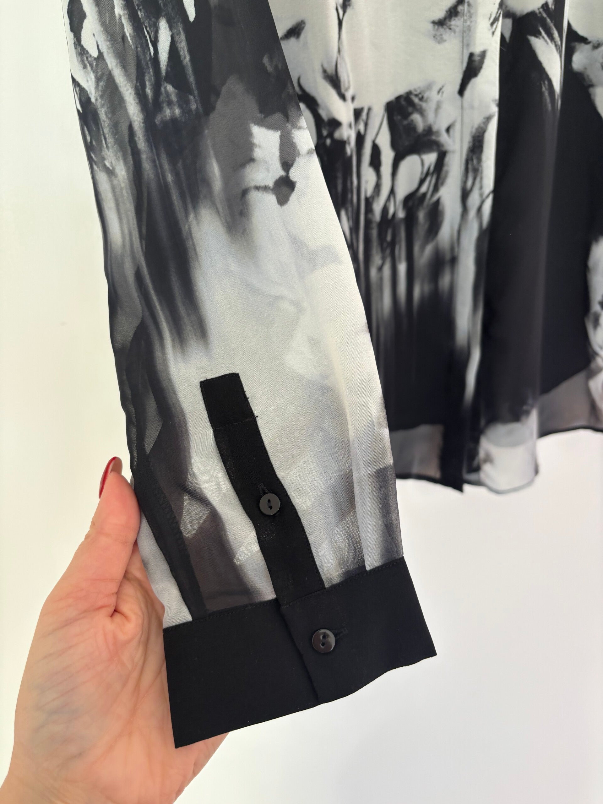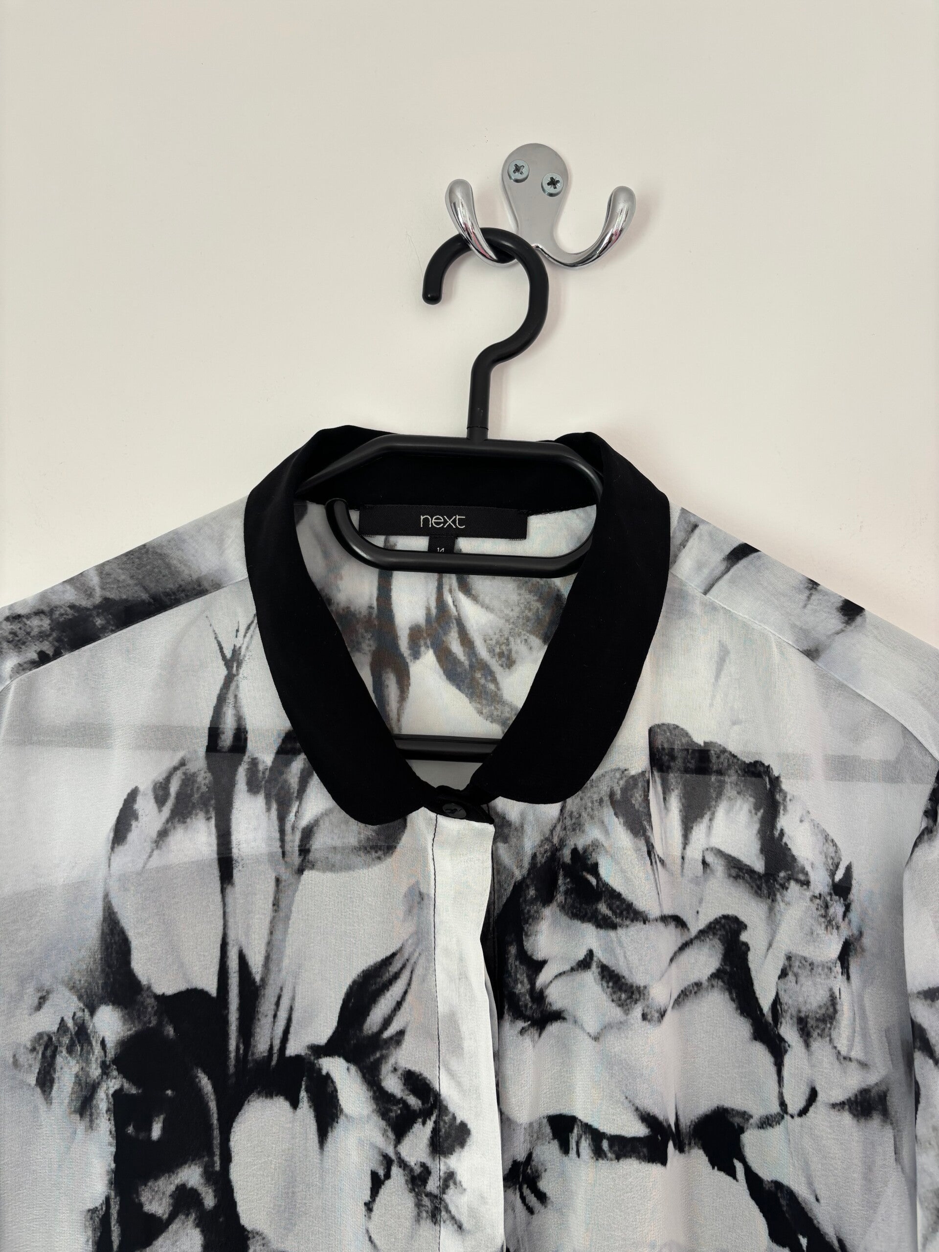 Next Long Sleeve Collared See Through Button-Up Blouse Shirt Size 14
